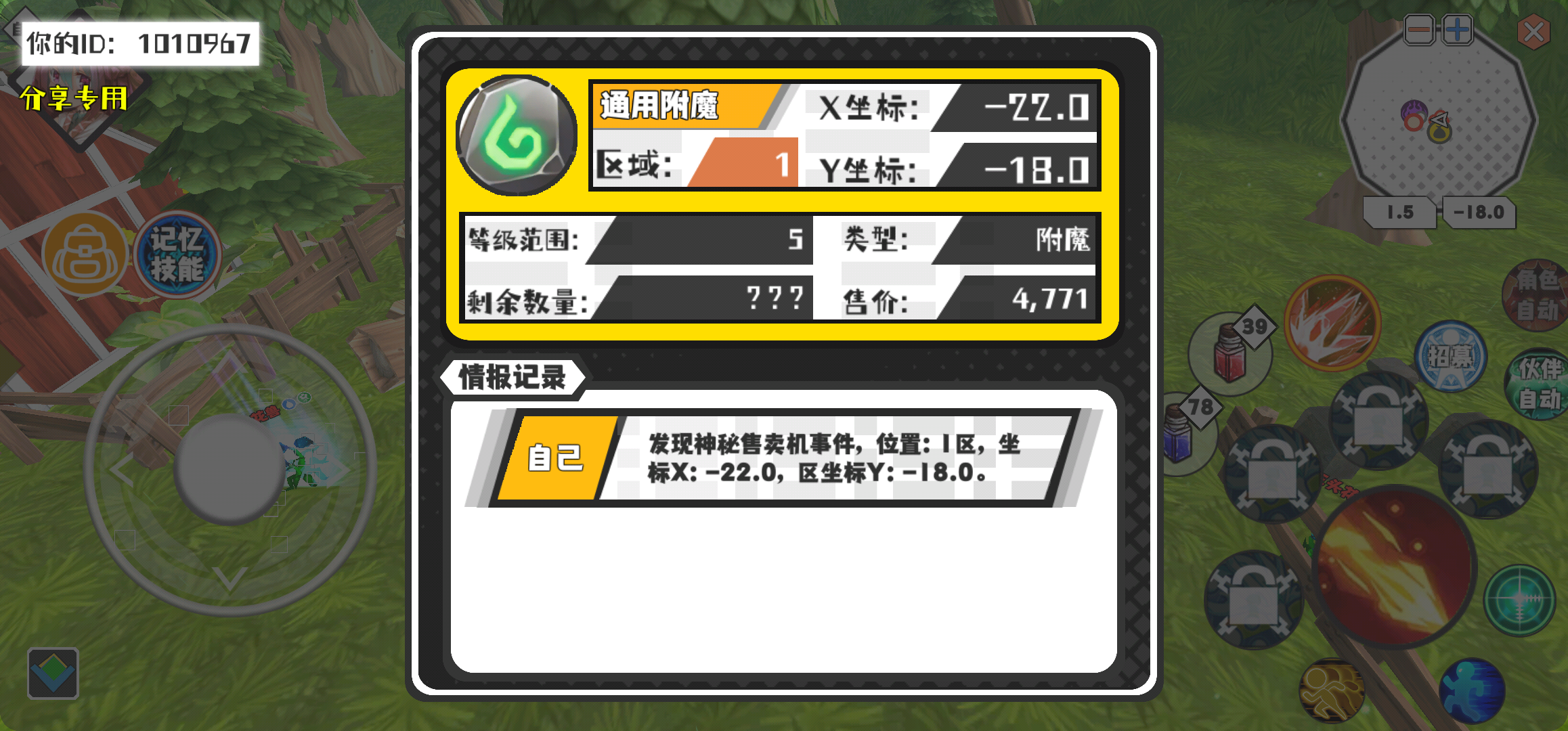 幸运时刻分享! 【神秘售卖机】3月22日下午8点 - 通用附魔【5级 】【稀有度:精良】 【1区】 【X:-22.0, Y:-18.0】
