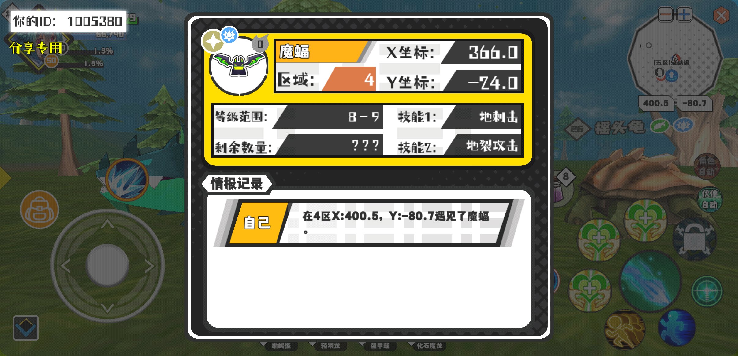 幸运时刻分享! 【魔物异常出没】3月22日下午8点 - 魔蝠【强度0】 【4区】 【X:366.0, Y:-24.0】