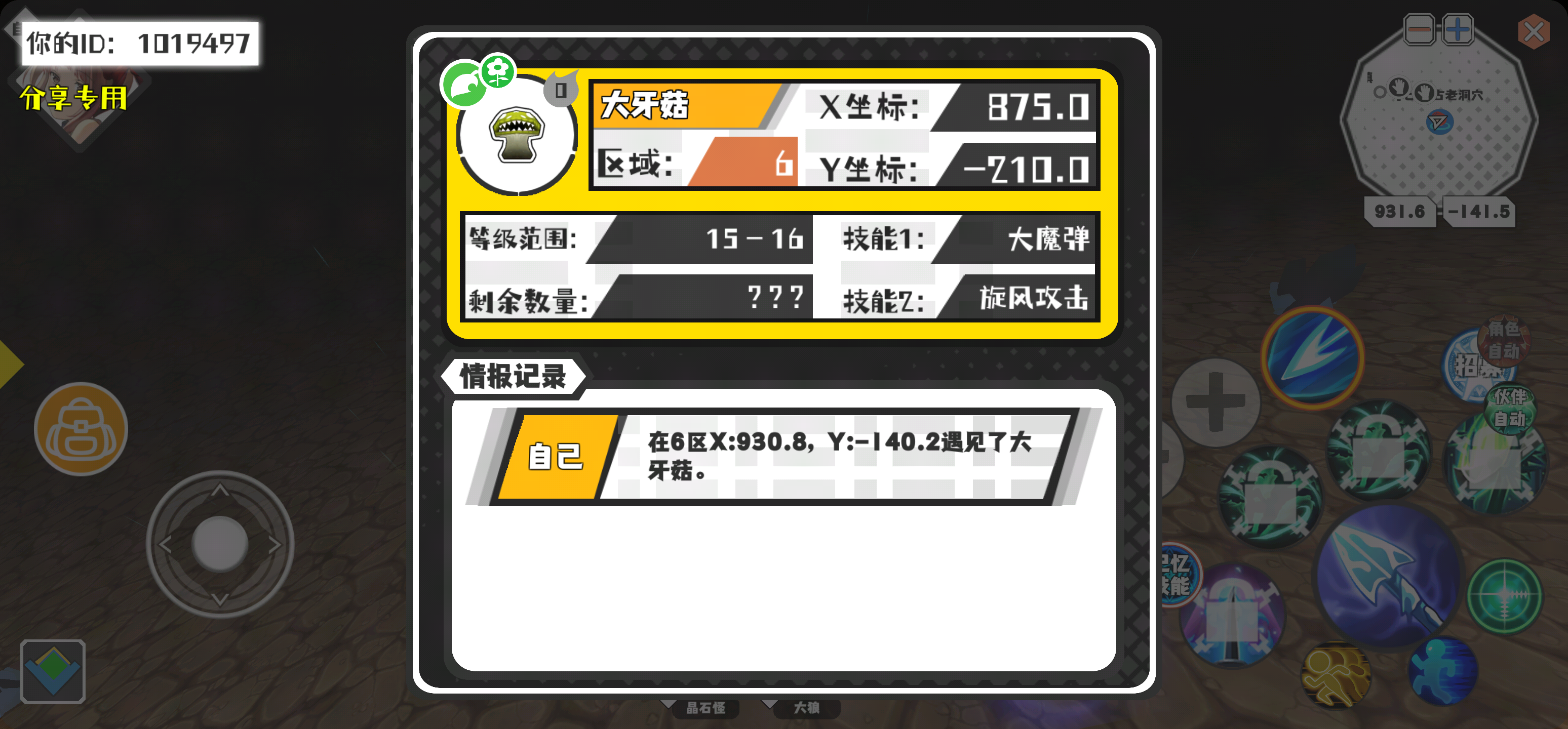 幸运时刻分享! 【魔物异常出没】3月22日下午8点 - 大牙菇【强度0】 【6区】 【X:875.0, Y:-210.0】