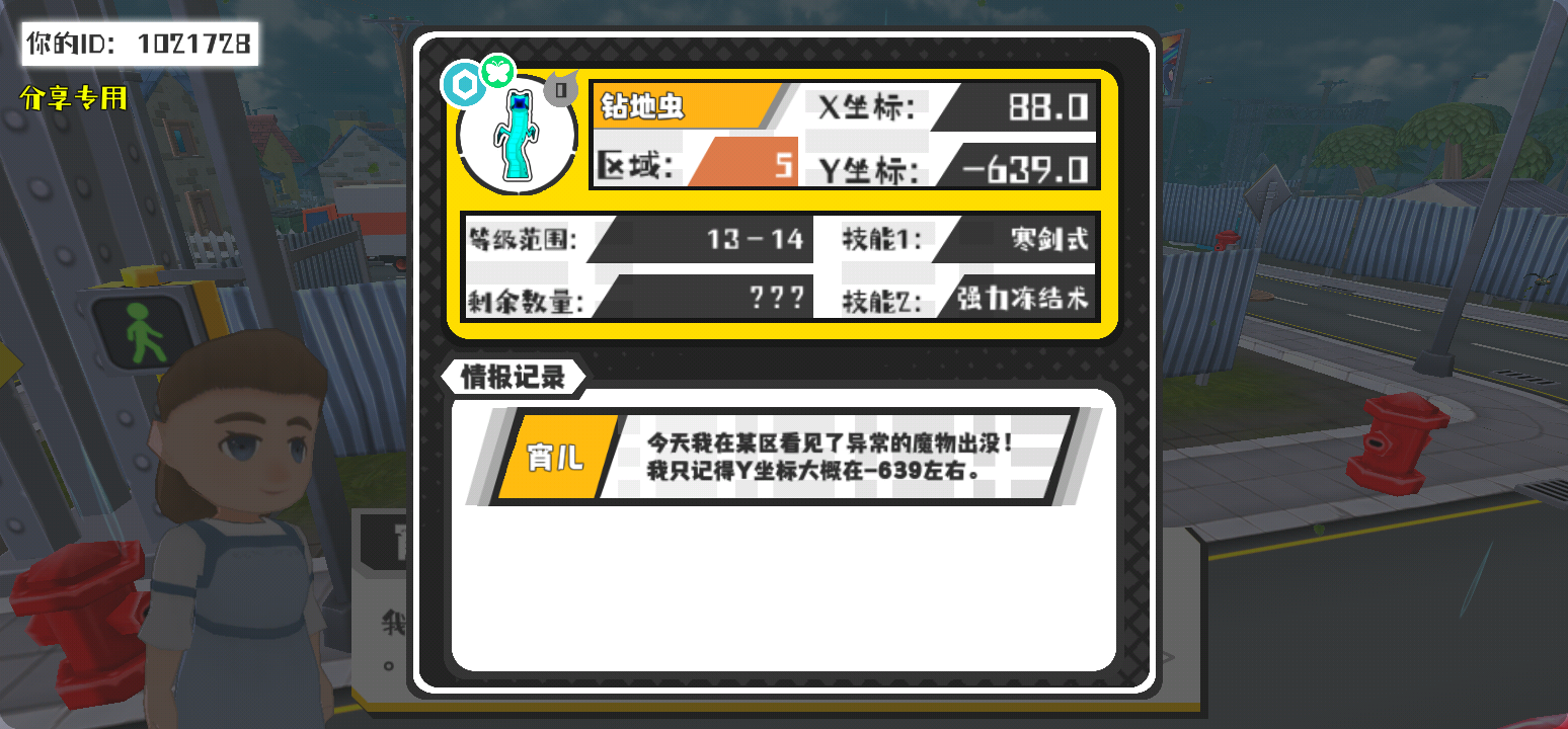 幸运时刻分享! 【魔物异常出没】3月21日下午1点 - 钻地虫【强度0】 【5区】 【X:88.0, Y:-639.0】