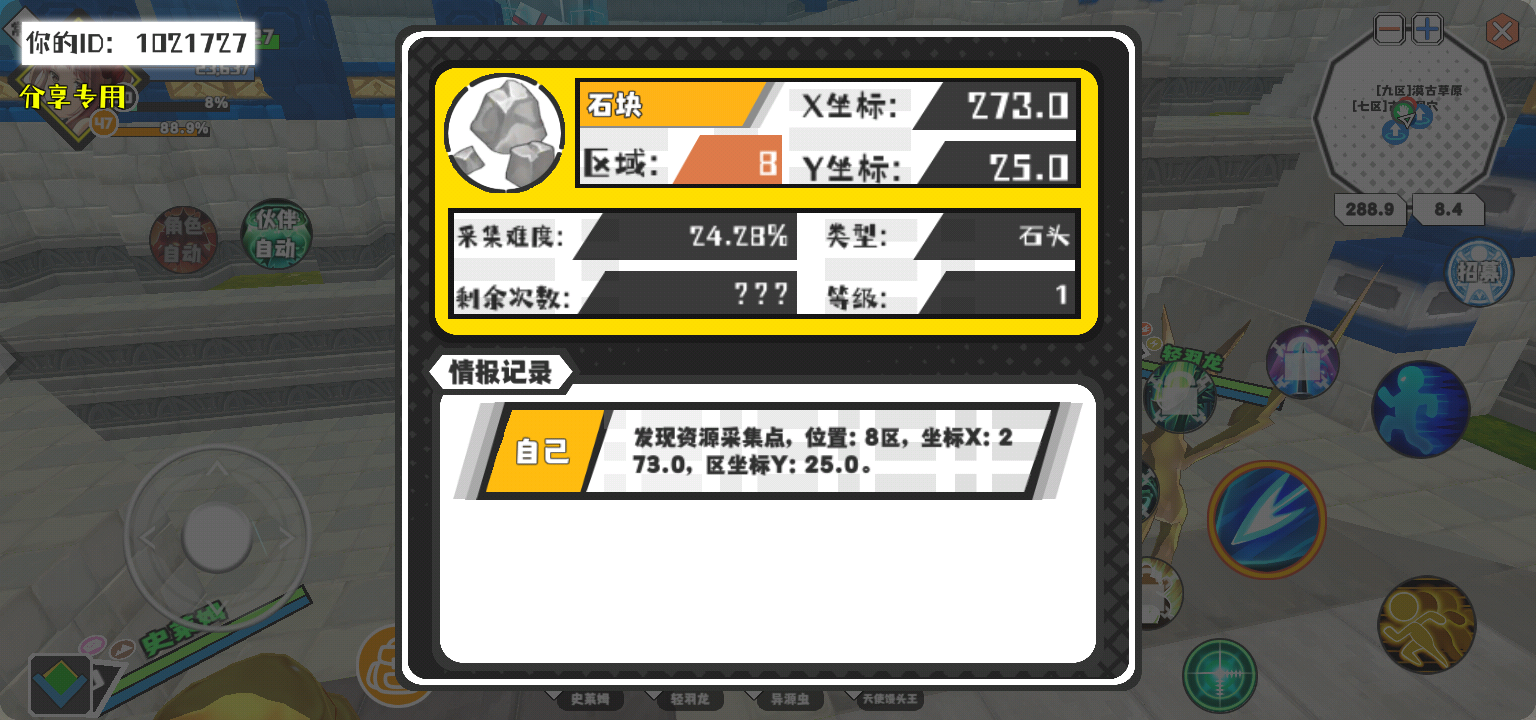 幸运时刻分享! 【资源采集点】3月21日下午12点 - 石块【1级】 【8区】 【X:273.0, Y:25.0】
