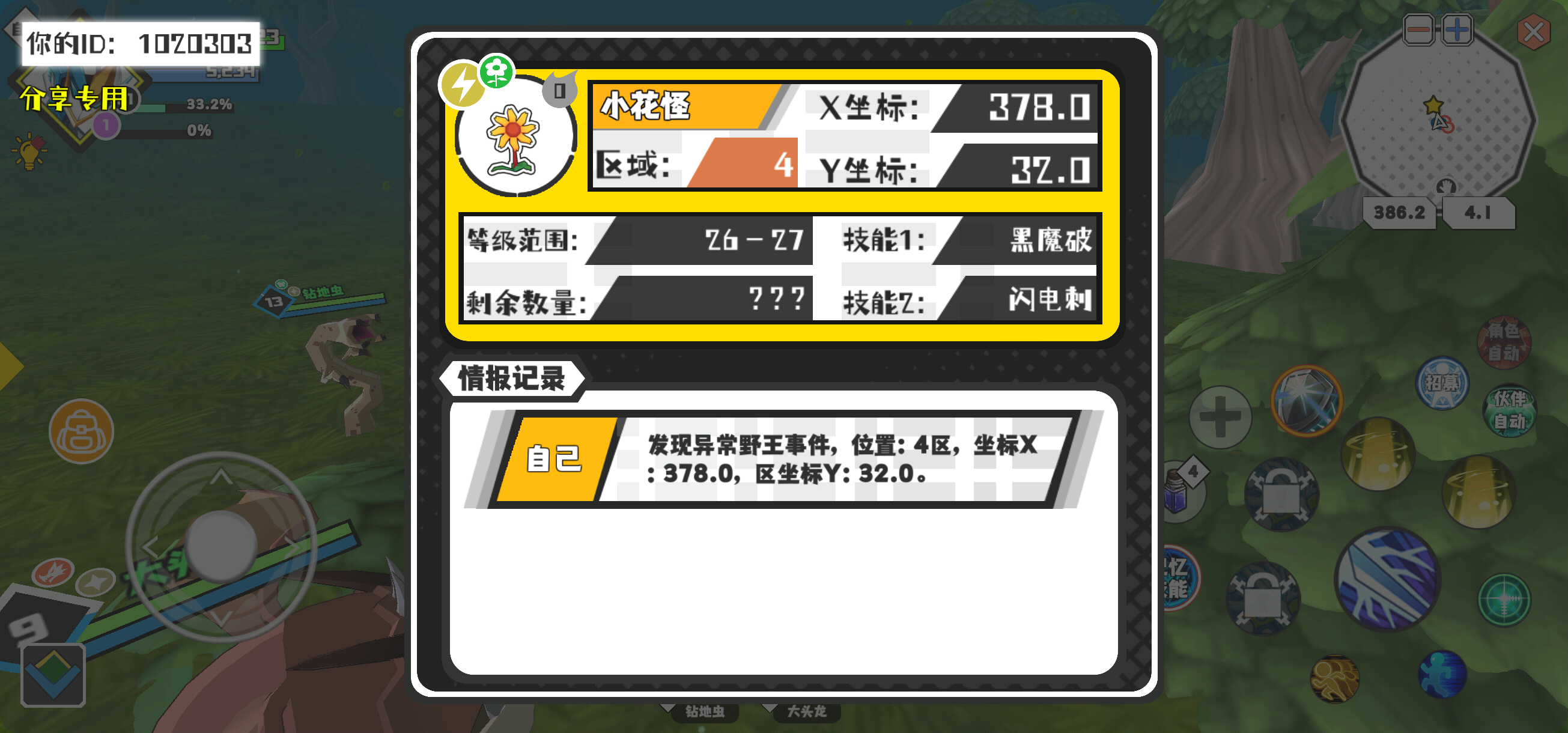 幸运时刻分享! 【野王异常出没】3月21日上午6点 - 小花怪【强度0】 【4区】 【X:378.0, Y:32.0】