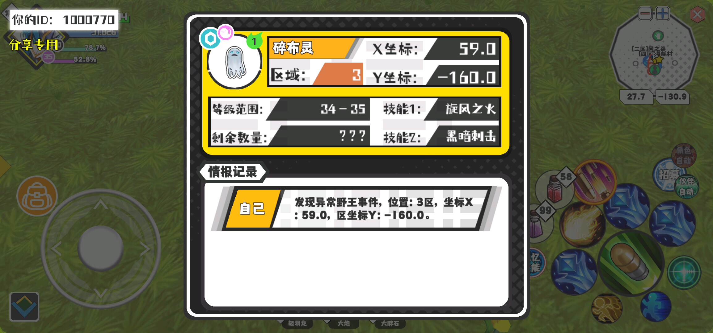 幸运时刻分享! 【野王异常出没】3月21日下午12点 - 碎布灵【强度1】 【3区】 【X:59.0, Y:-160.0】
