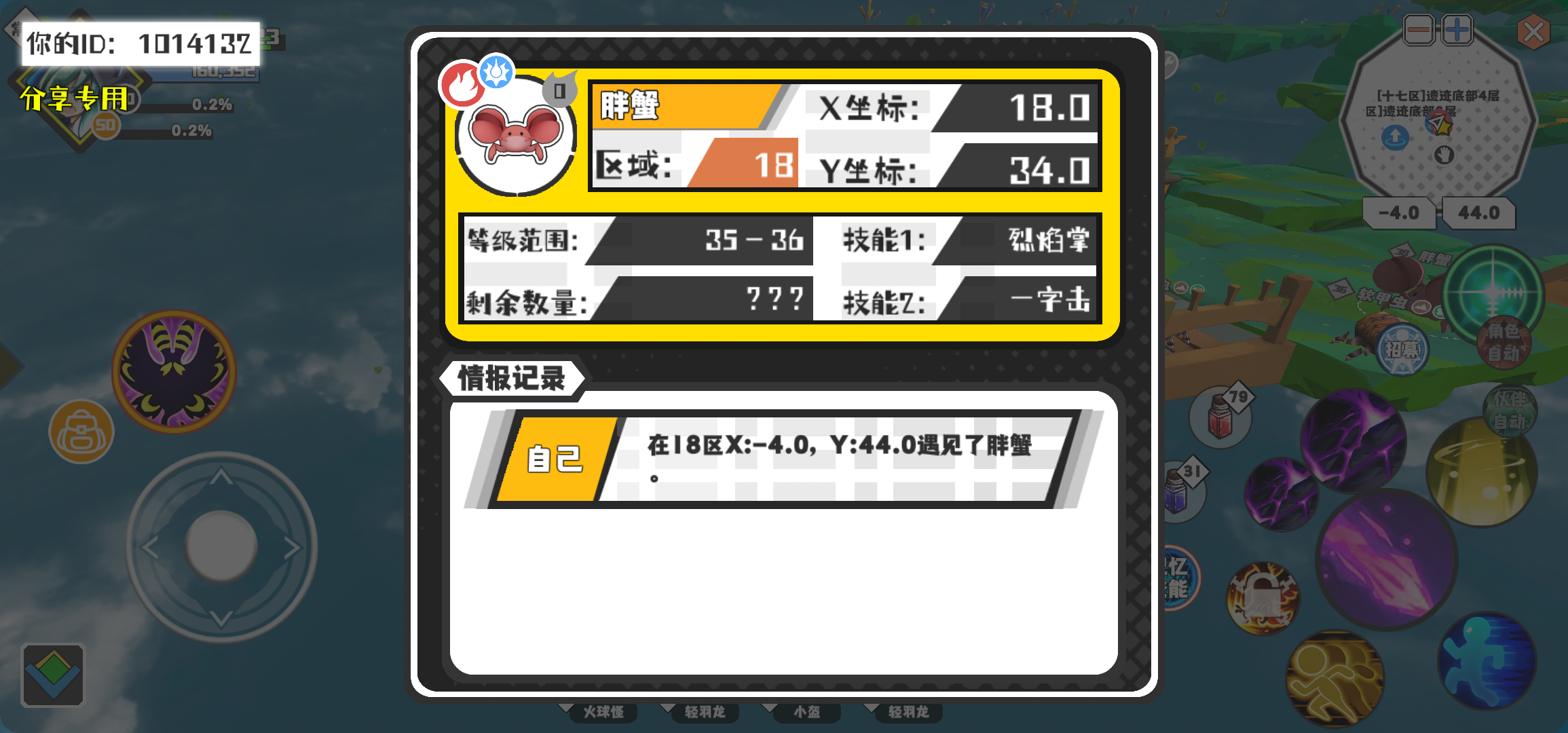 幸运时刻分享! 【魔物异常出没】3月20日上午10点 - 胖蟹【强度0】 【18区】 【X:18.0, Y:34.0】