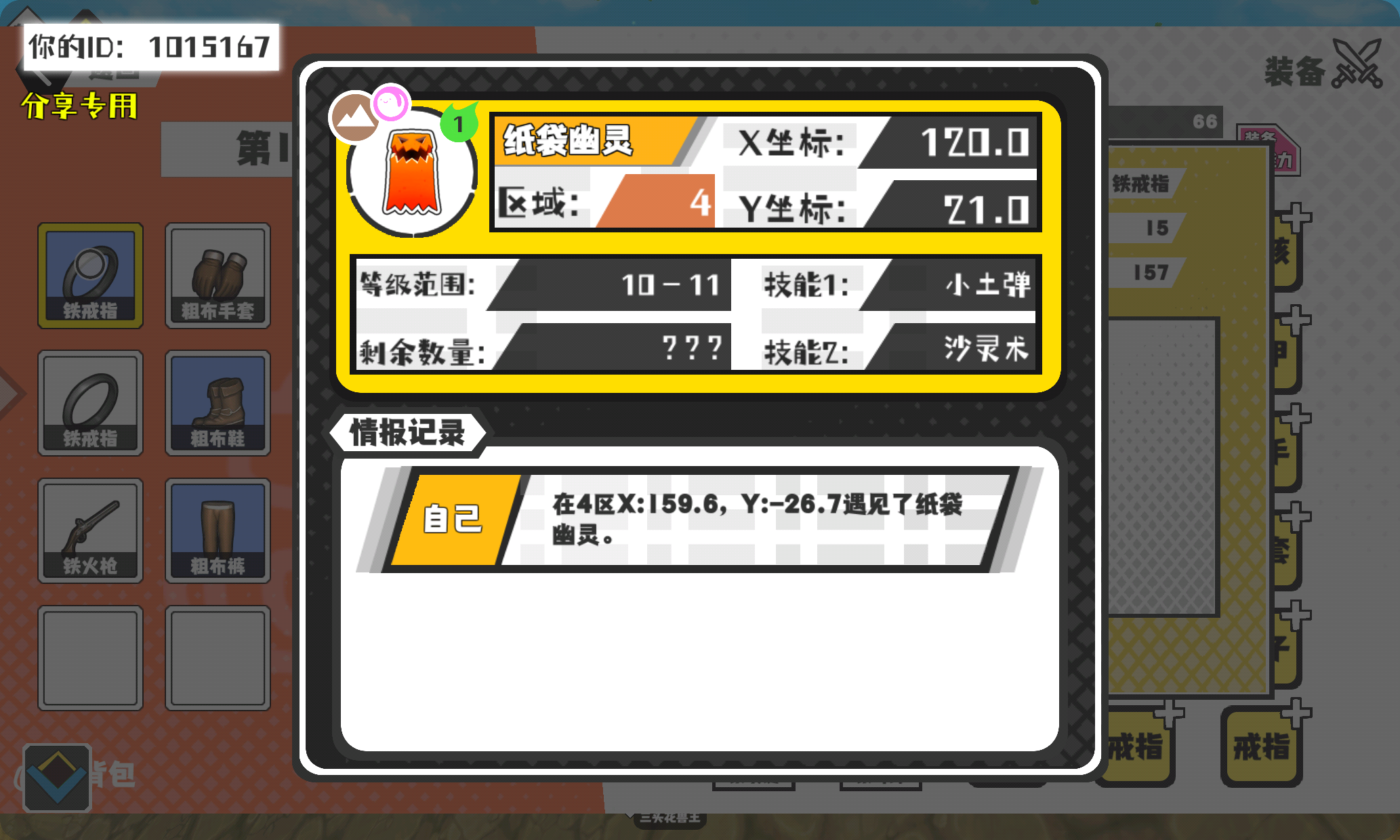 幸运时刻分享! 【魔物异常出没】3月20日上午10点 - 纸袋幽灵【强度1】 【4区】 【X:120.0, Y:21.0】
