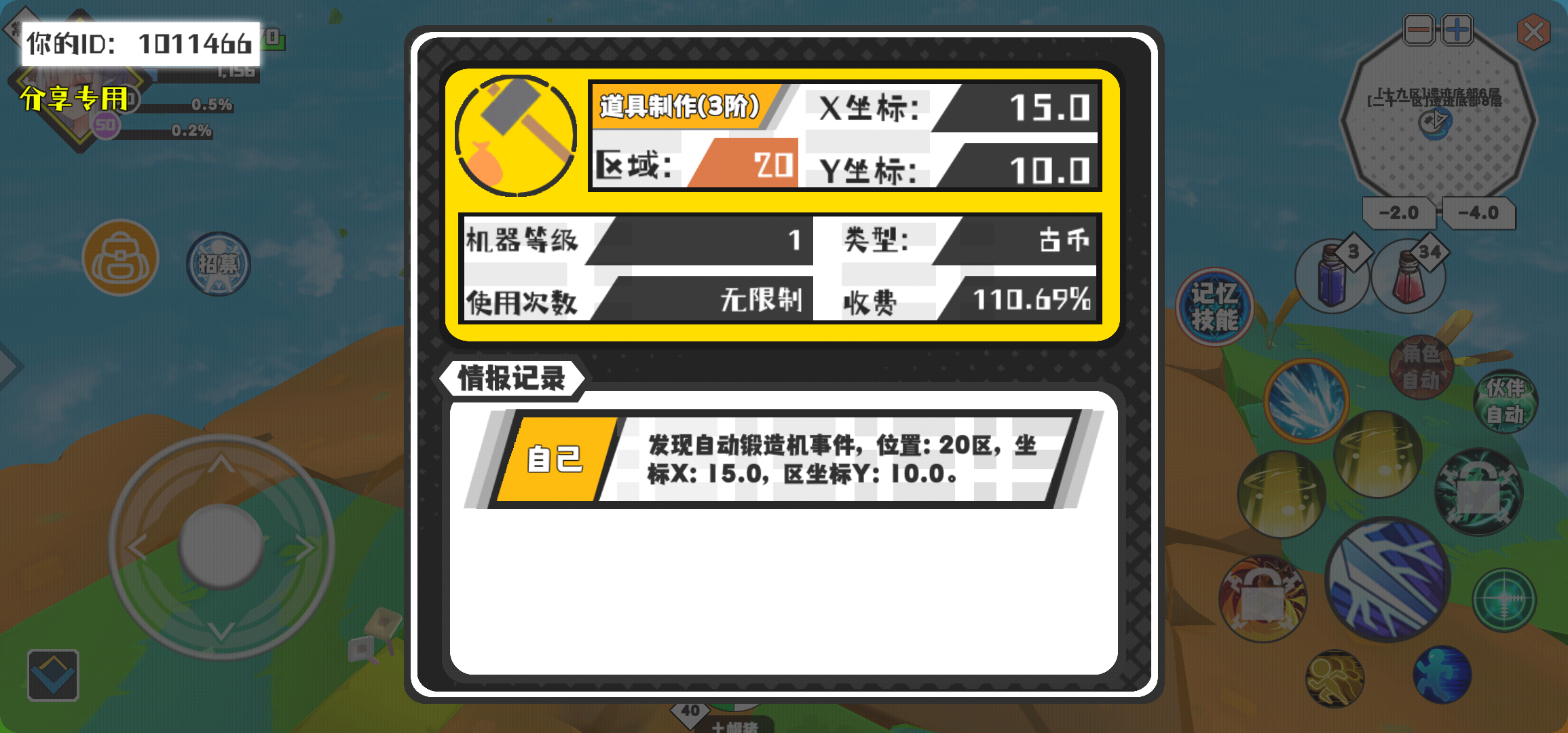 幸运时刻分享! 【自动锻造机】3月19日下午11点 - 道具制作(3阶)【1级机器】 【20区】 【X:15.0, Y:10.0】
