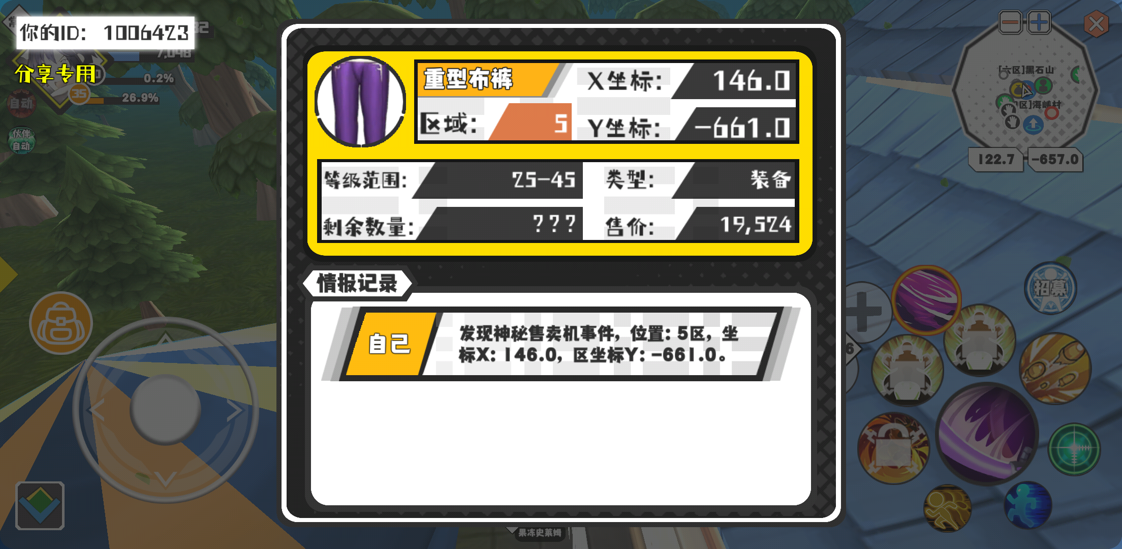 幸运时刻分享! 【神秘售卖机】3月18日下午11点 - 重型布裤【25-45级 】【稀有度:精良】 【5区】 【X:146.0, Y:-661.0】