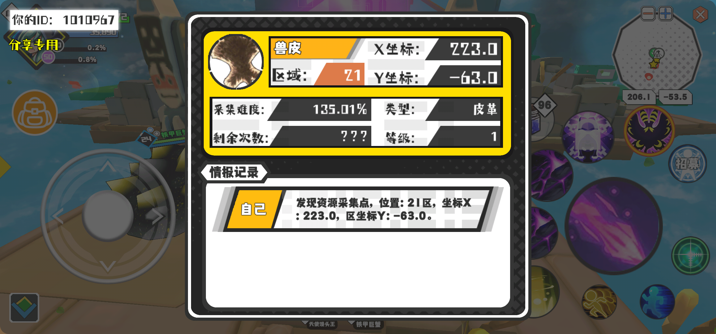幸运时刻分享! 【资源采集点】3月19日上午7点 - 兽皮【1级】 【21区】 【X:223.0, Y:-63.0】