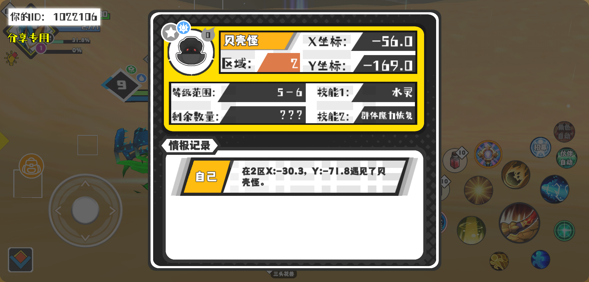 幸运时刻分享! 【魔物异常出没】3月18日下午11点 - 贝壳怪【强度0】 【2区】 【X:-56.0, Y:-169.0】
