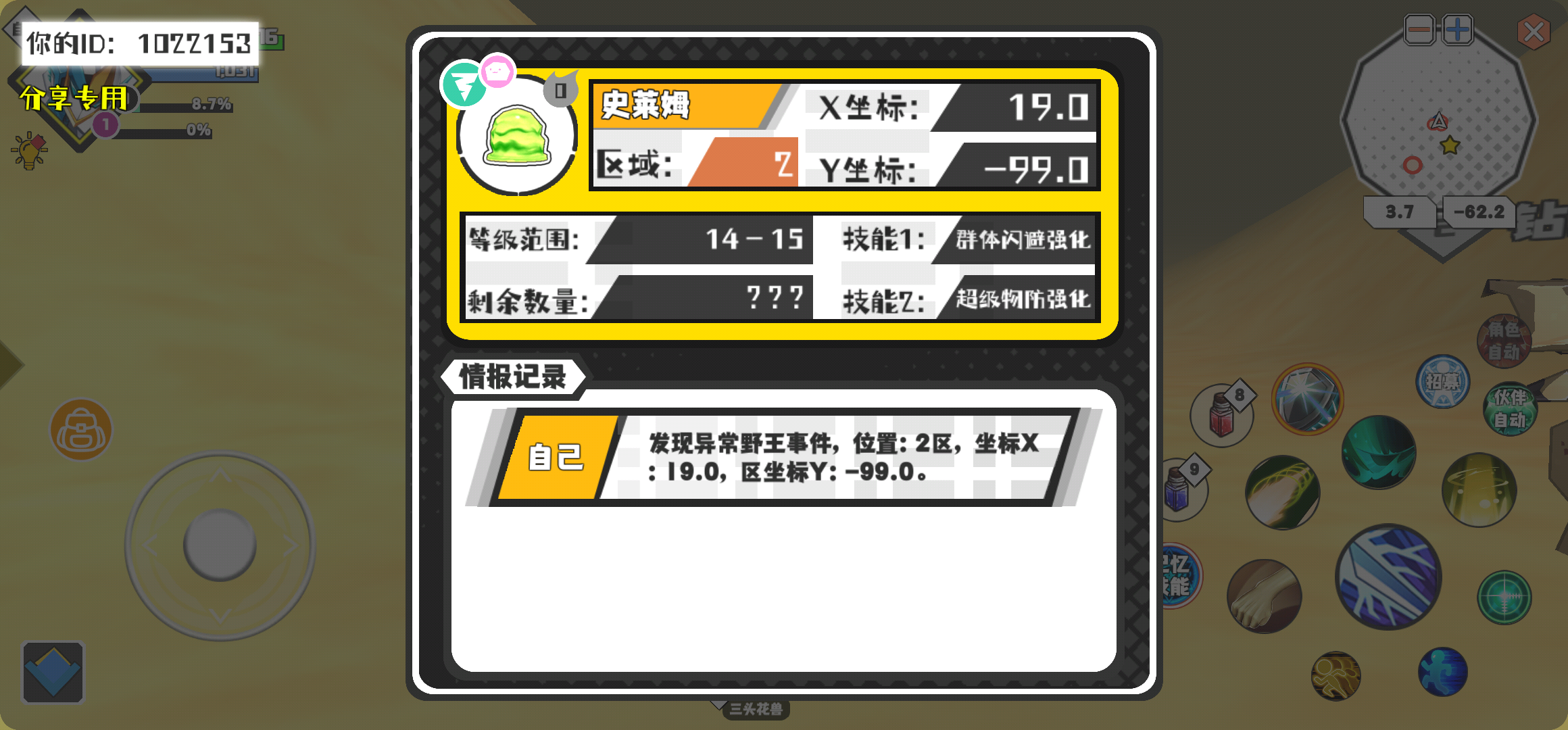 幸运时刻分享! 【野王异常出没】3月18日下午11点 - 史莱姆【强度0】 【2区】 【X:19.0, Y:-99.0】