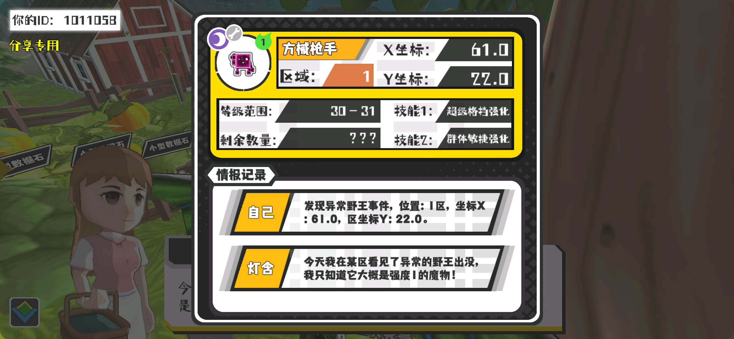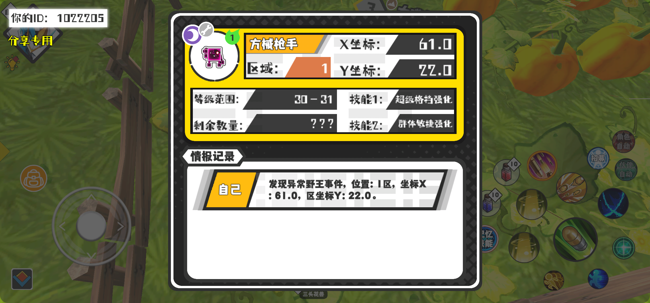 幸运时刻分享! 【野王异常出没】3月19日上午2点 - 方械枪手【强度1】 【1区】 【X:61.0, Y:22.0】