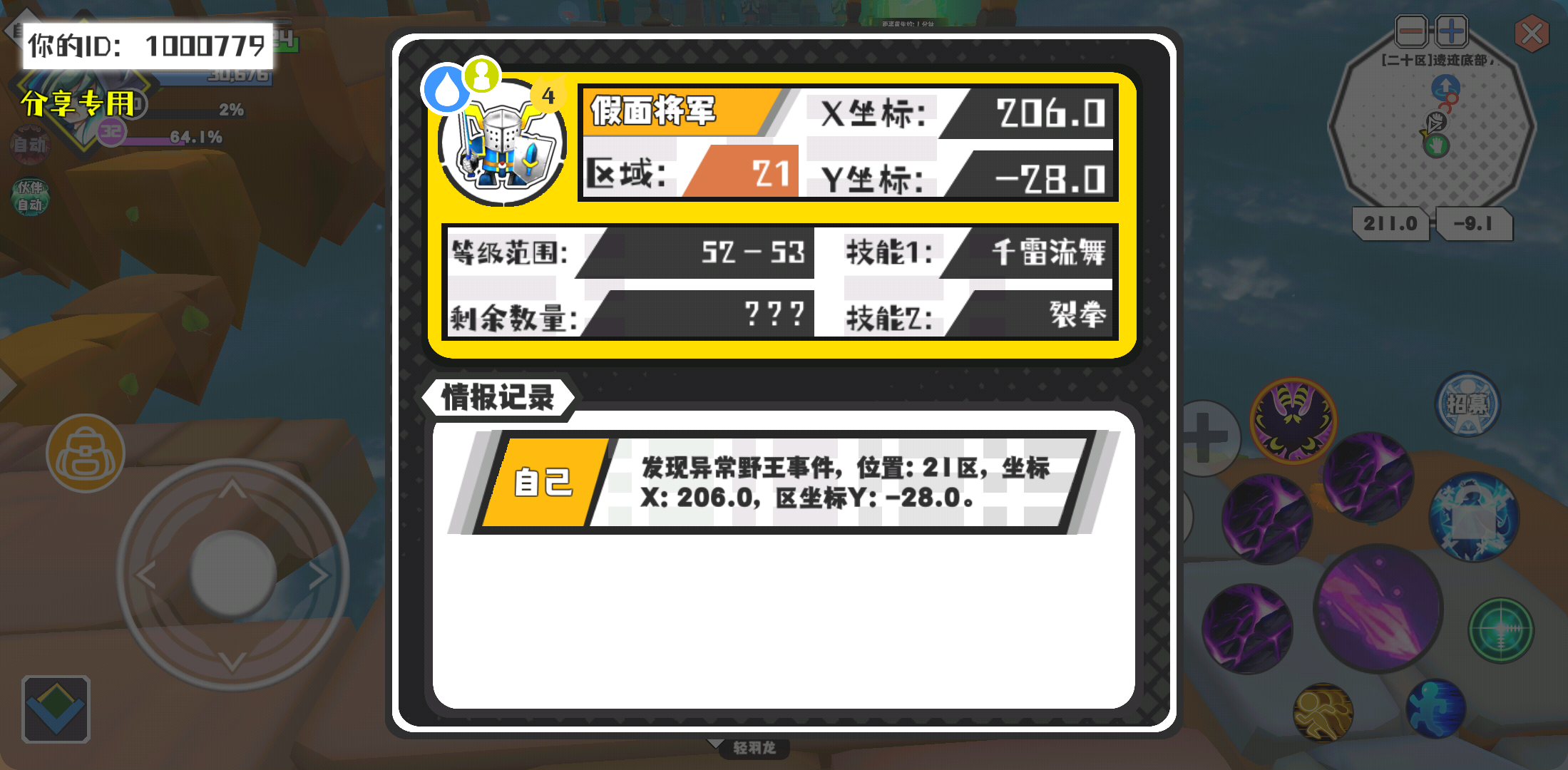 幸运时刻分享! 【野王异常出没】3月18日下午8点 - 假面将军【强度4】 【21区】 【X:206.0, Y:-28.0】