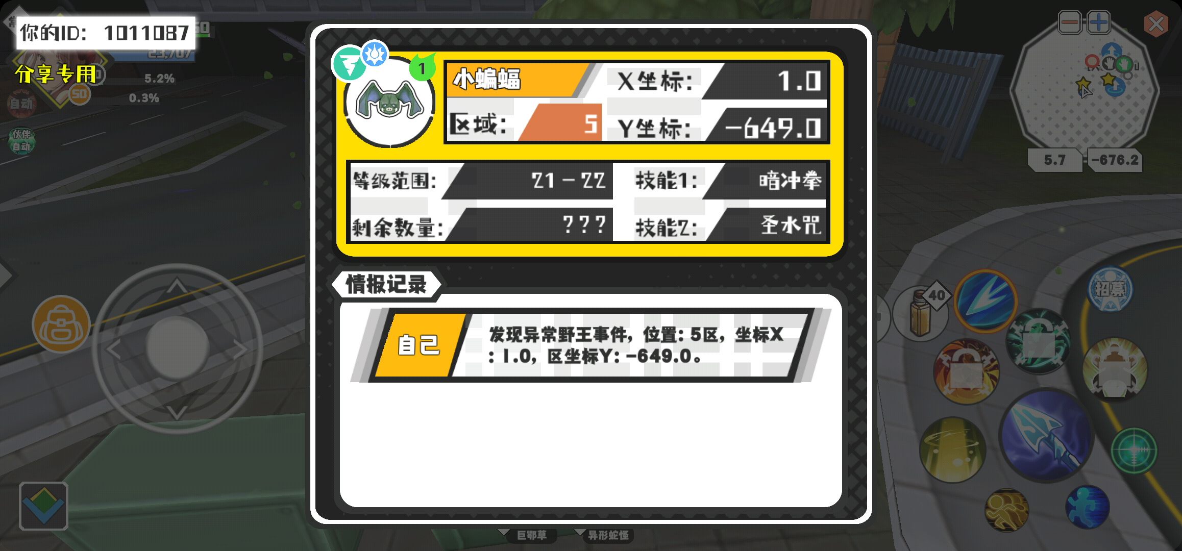 幸运时刻分享! 【野王异常出没】3月18日下午5点 - 小蝙蝠【强度1】 【5区】 【X:1.0, Y:-649.0】