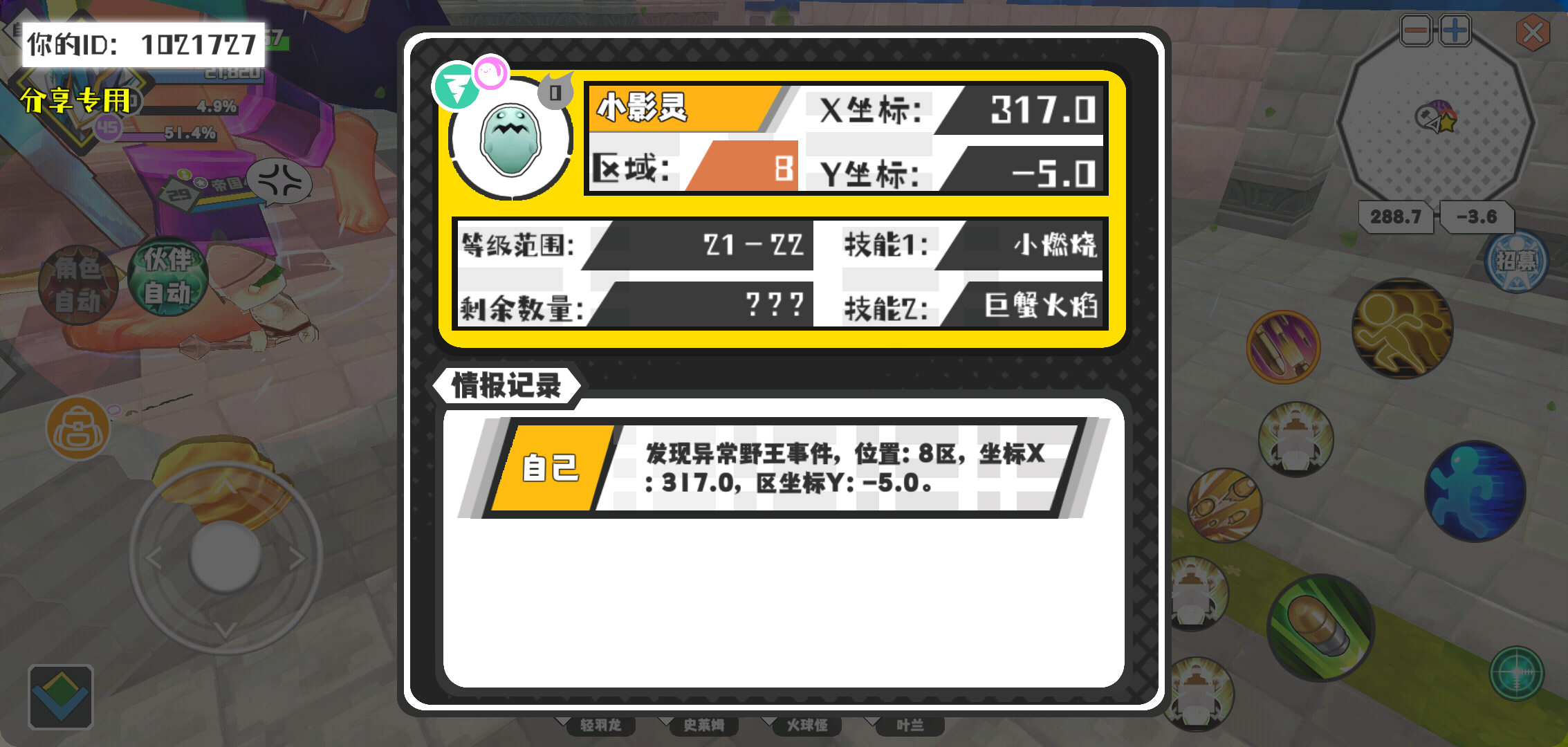 幸运时刻分享! 【野王异常出没】3月18日下午8点 - 小影灵【强度0】 【8区】 【X:317.0, Y:-5.0】