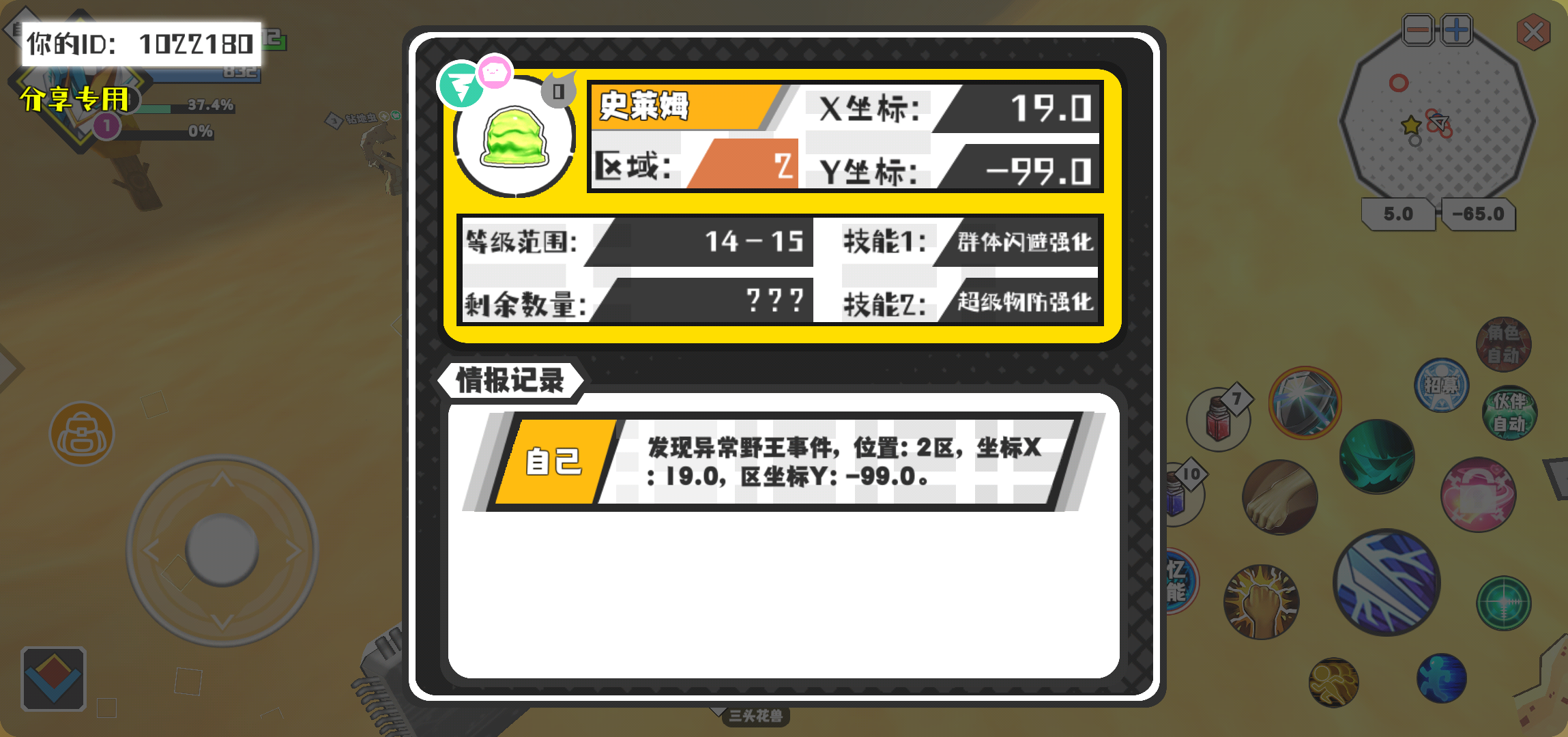 幸运时刻分享! 【野王异常出没】3月18日下午9点 - 史莱姆【强度0】 【2区】 【X:19.0, Y:-99.0】