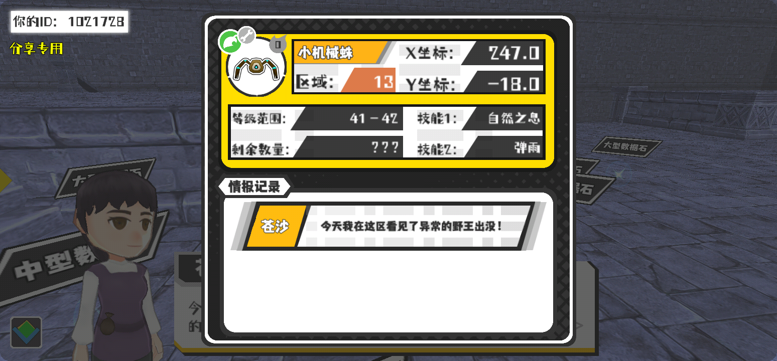 幸运时刻分享! 【野王异常出没】3月18日下午9点 - 小机械蛛【强度0】 【13区】 【X:247.0, Y:-18.0】