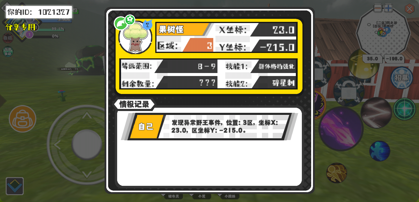 幸运时刻分享! 【野王异常出没】3月18日上午1点 - 果树怪【强度2】 【3区】 【X:23.0, Y:-215.0】