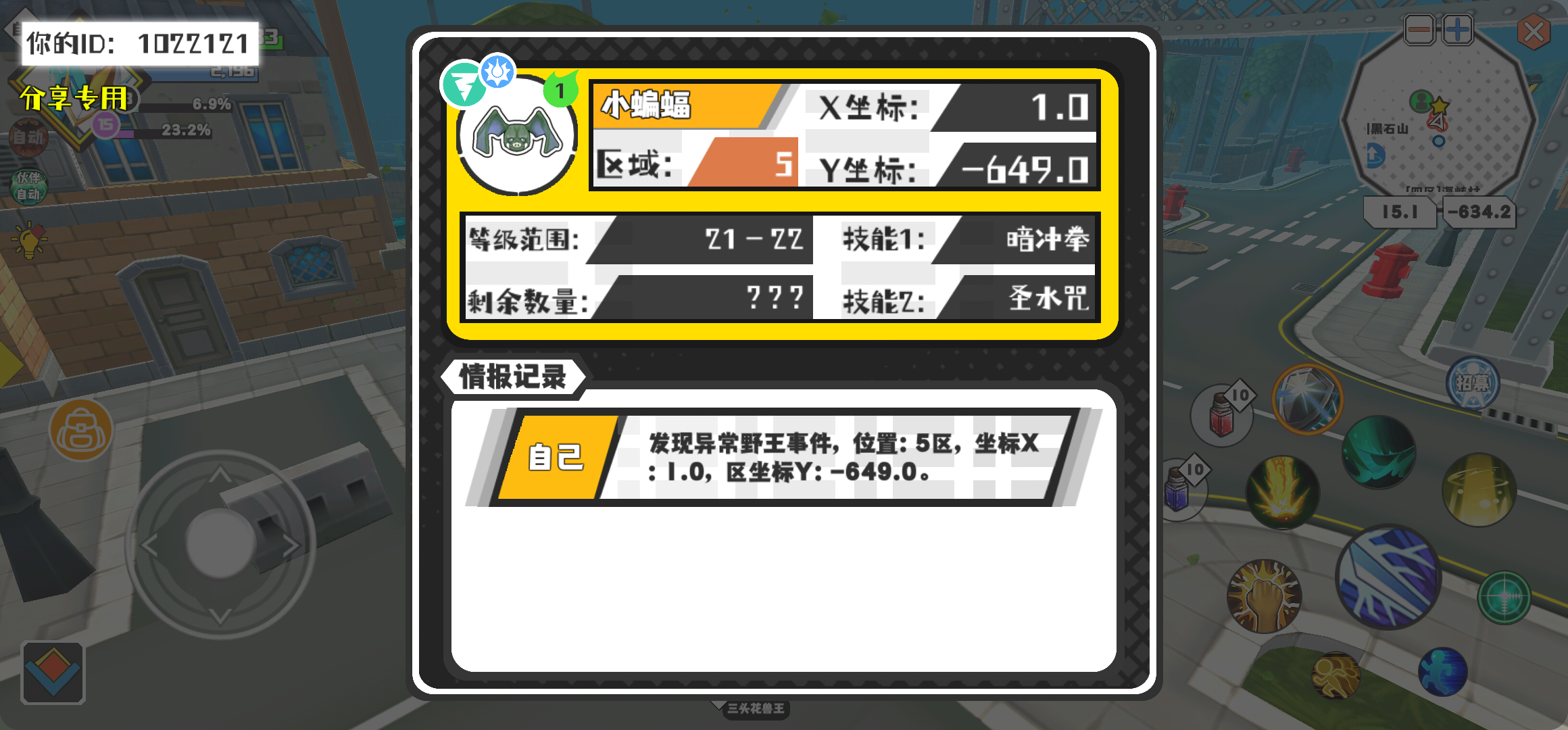幸运时刻分享! 【野王异常出没】3月18日下午12点 - 小蝙蝠【强度1】 【5区】 【X:1.0, Y:-649.0】