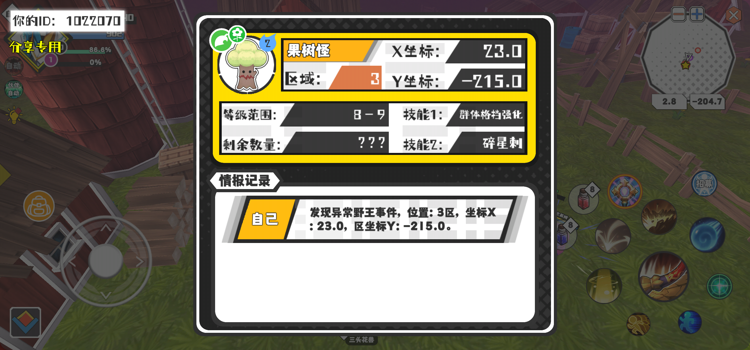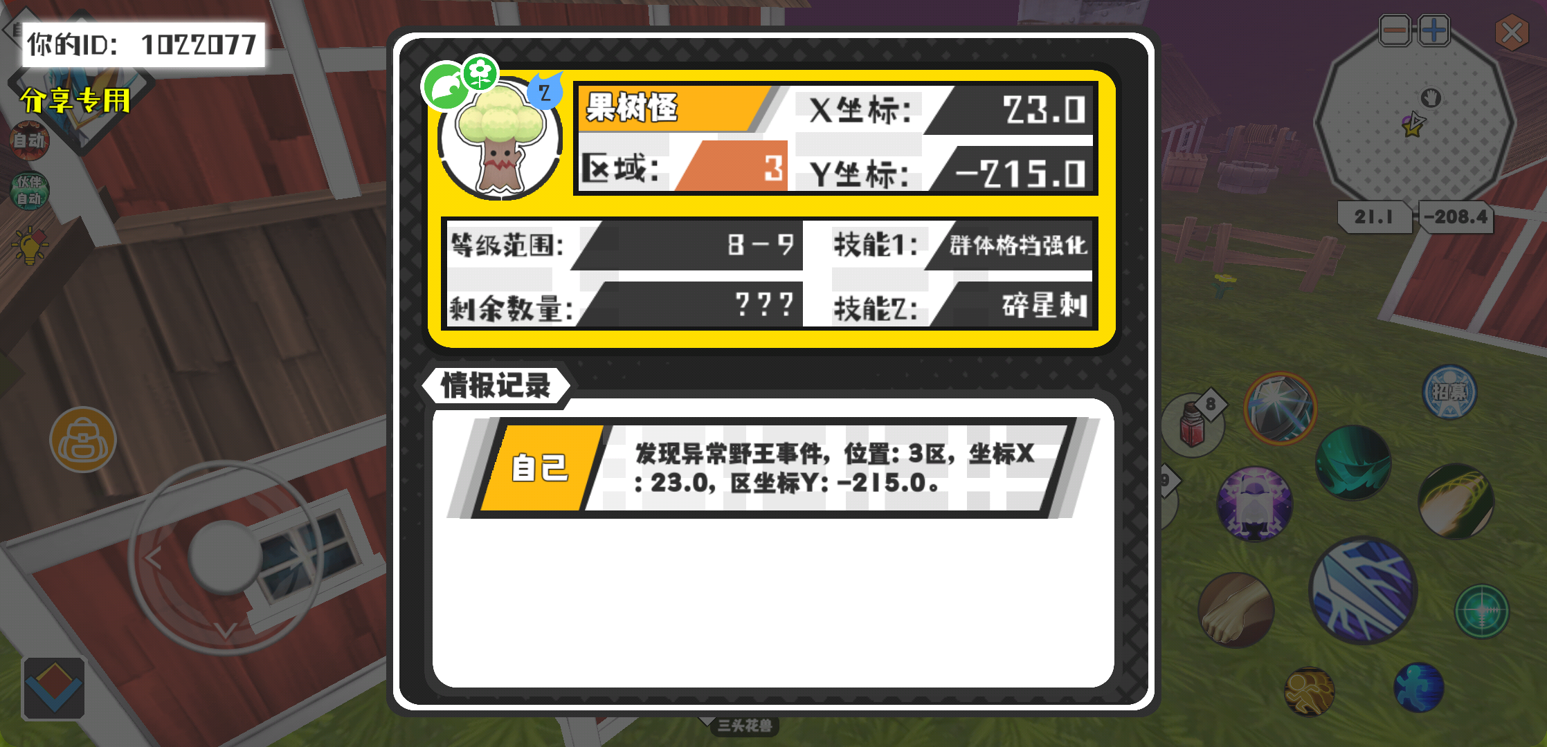 幸运时刻分享! 【野王异常出没】3月17日下午11点 - 果树怪【强度2】 【3区】 【X:23.0, Y:-215.0】
