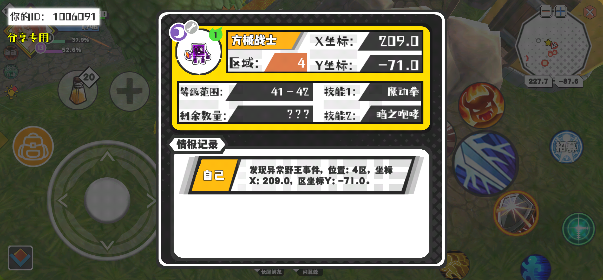 幸运时刻分享! 【野王异常出没】3月17日下午6点 - 方械战士【强度1】 【4区】 【X:209.0, Y:-71.0】