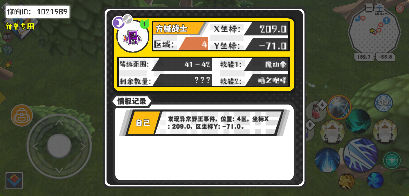 幸运时刻分享! 【野王异常出没】3月17日下午8点 - 方械战士【强度1】 【4区】 【X:209.0, Y:-71.0】