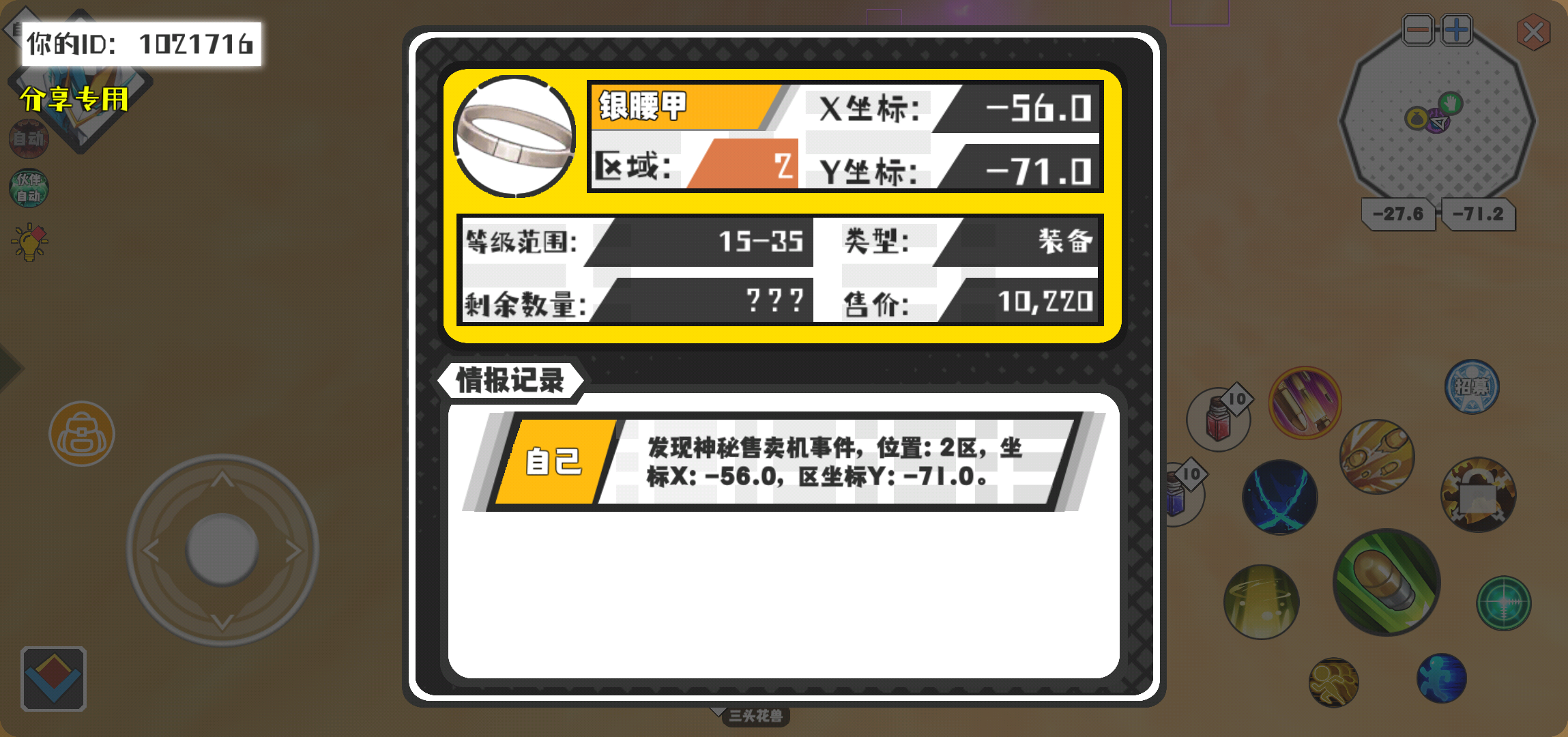 幸运时刻分享! 【神秘售卖机】3月14日下午8点 - 银腰甲【15-35级 】【稀有度:精良】 【2区】 【X:-56.0, Y:-71.0】