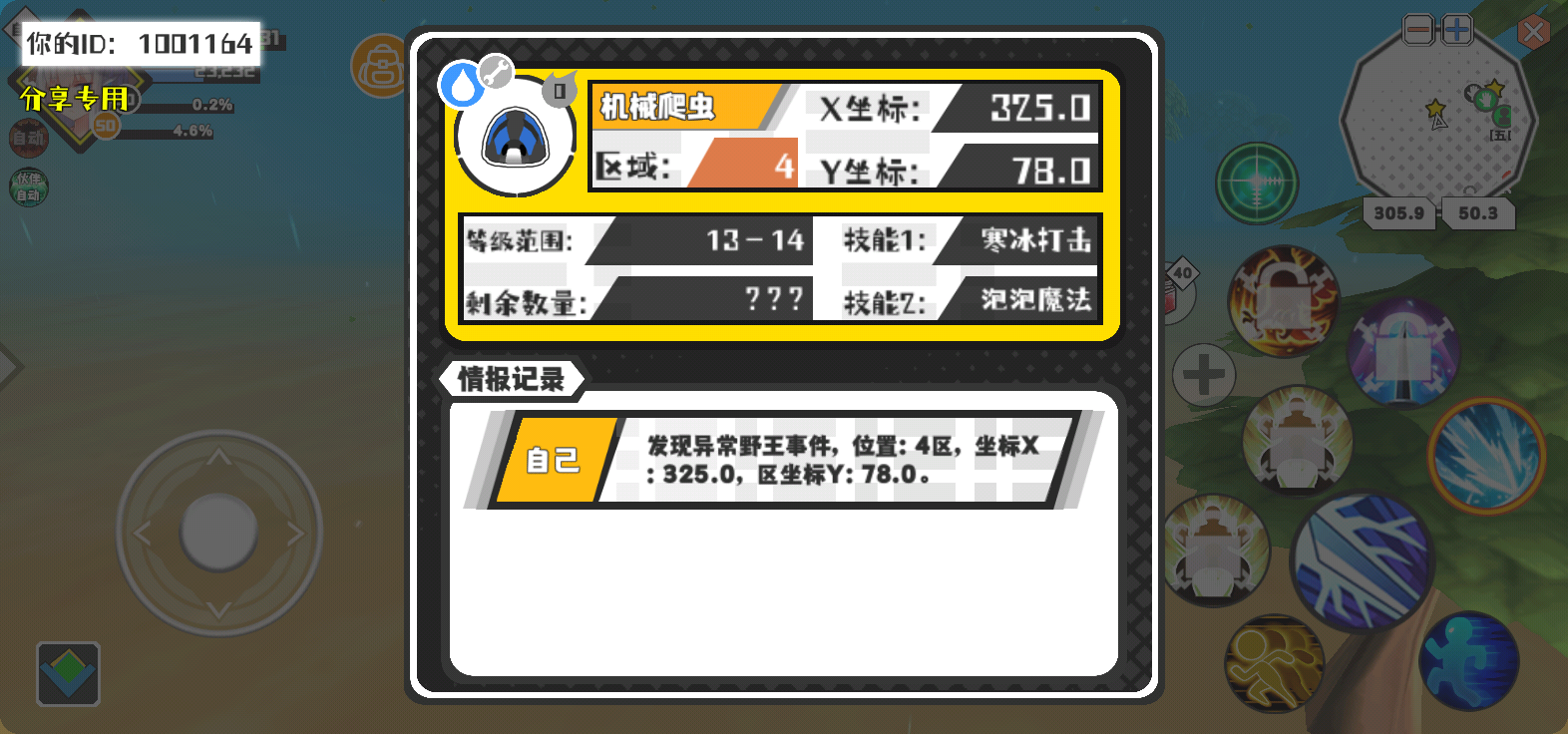 幸运时刻分享! 【野王异常出没】3月15日上午6点 - 机械爬虫【强度0】 【4区】 【X:325.0, Y:78.0】