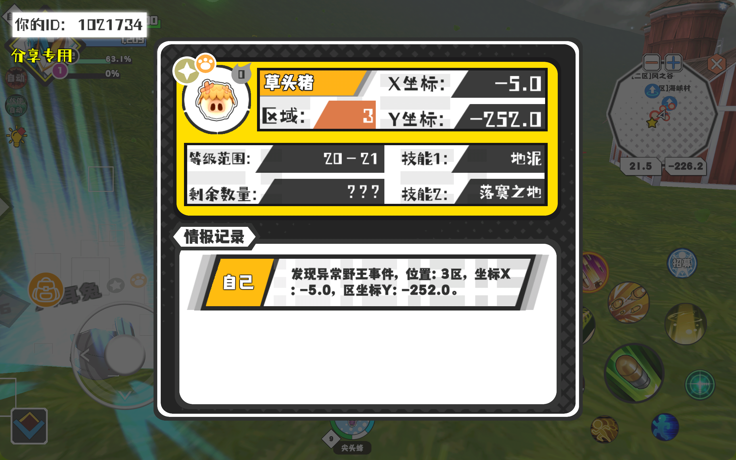 幸运时刻分享! 【野王异常出没】3月15日上午7点 - 草头猪【强度0】 【3区】 【X:-5.0, Y:-252.0】