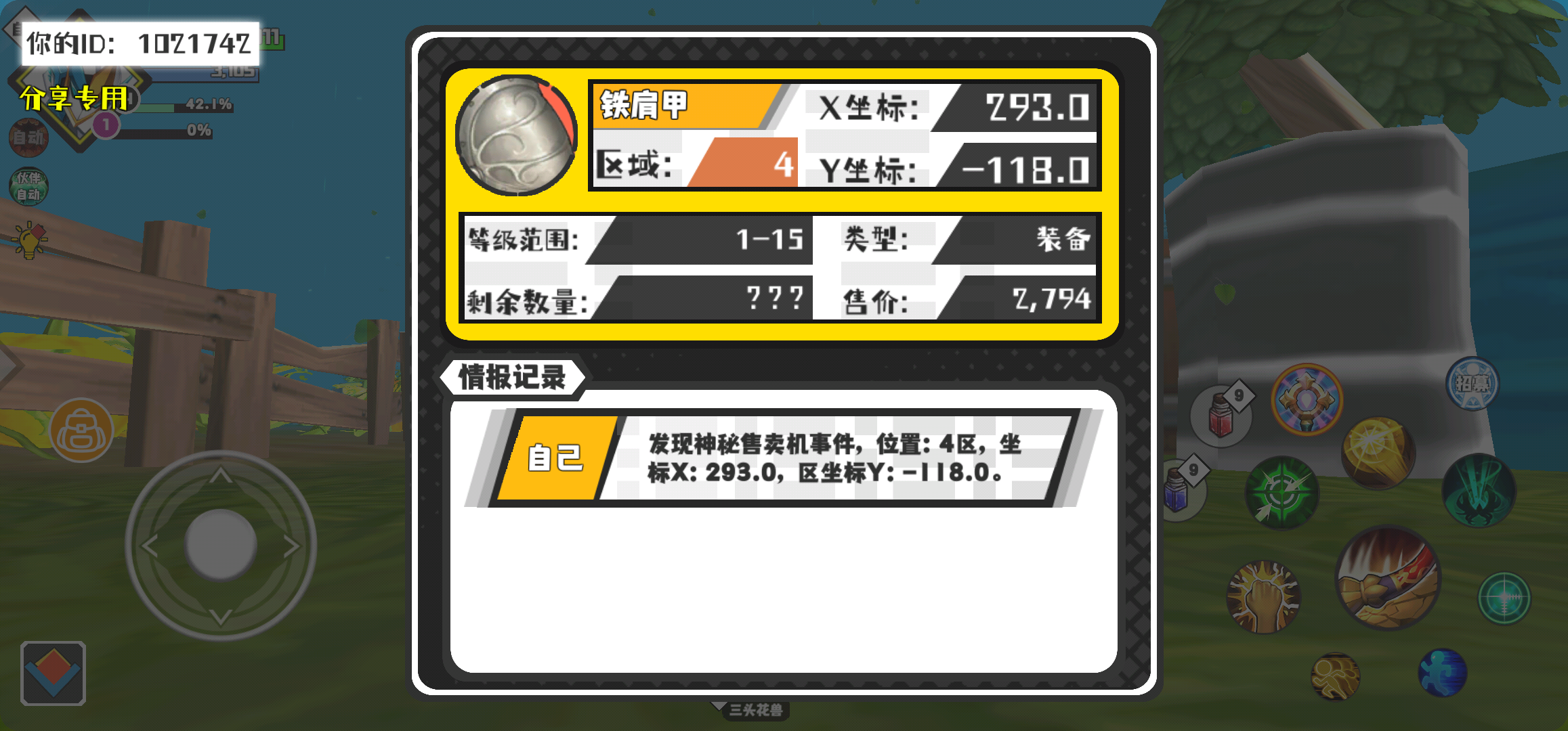 幸运时刻分享! 【神秘售卖机】3月15日上午9点 - 铁肩甲【1-15级 】【稀有度:混沌】 【4区】 【X:293.0, Y:-118.0】
