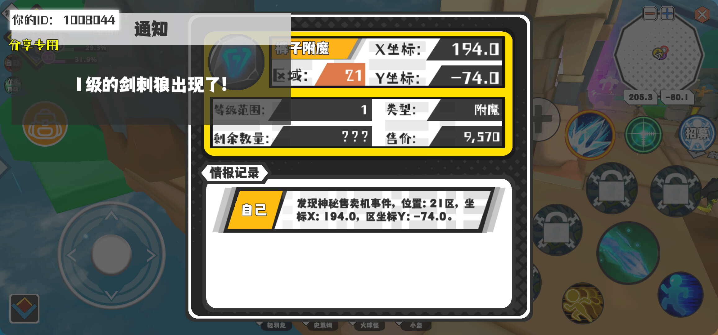 幸运时刻分享! 【神秘售卖机】3月14日下午8点 - 裤子附魔【1级 】【稀有度:精良】 【21区】 【X:194.0, Y:-74.0】