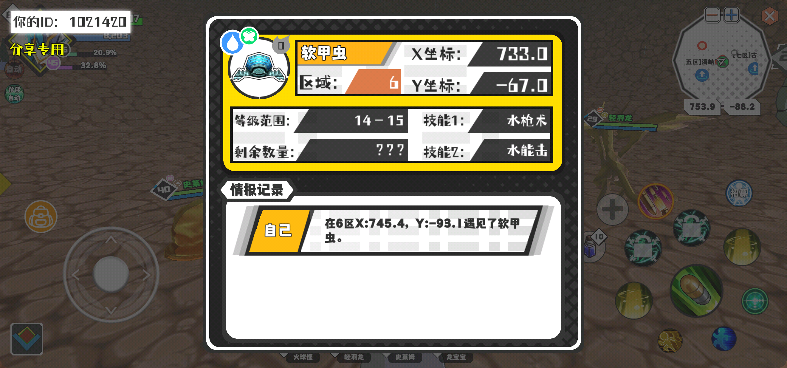 幸运时刻分享! 【魔物异常出没】3月14日下午3点 - 软甲虫【强度0】 【6区】 【X:733.0, Y:-67.0】