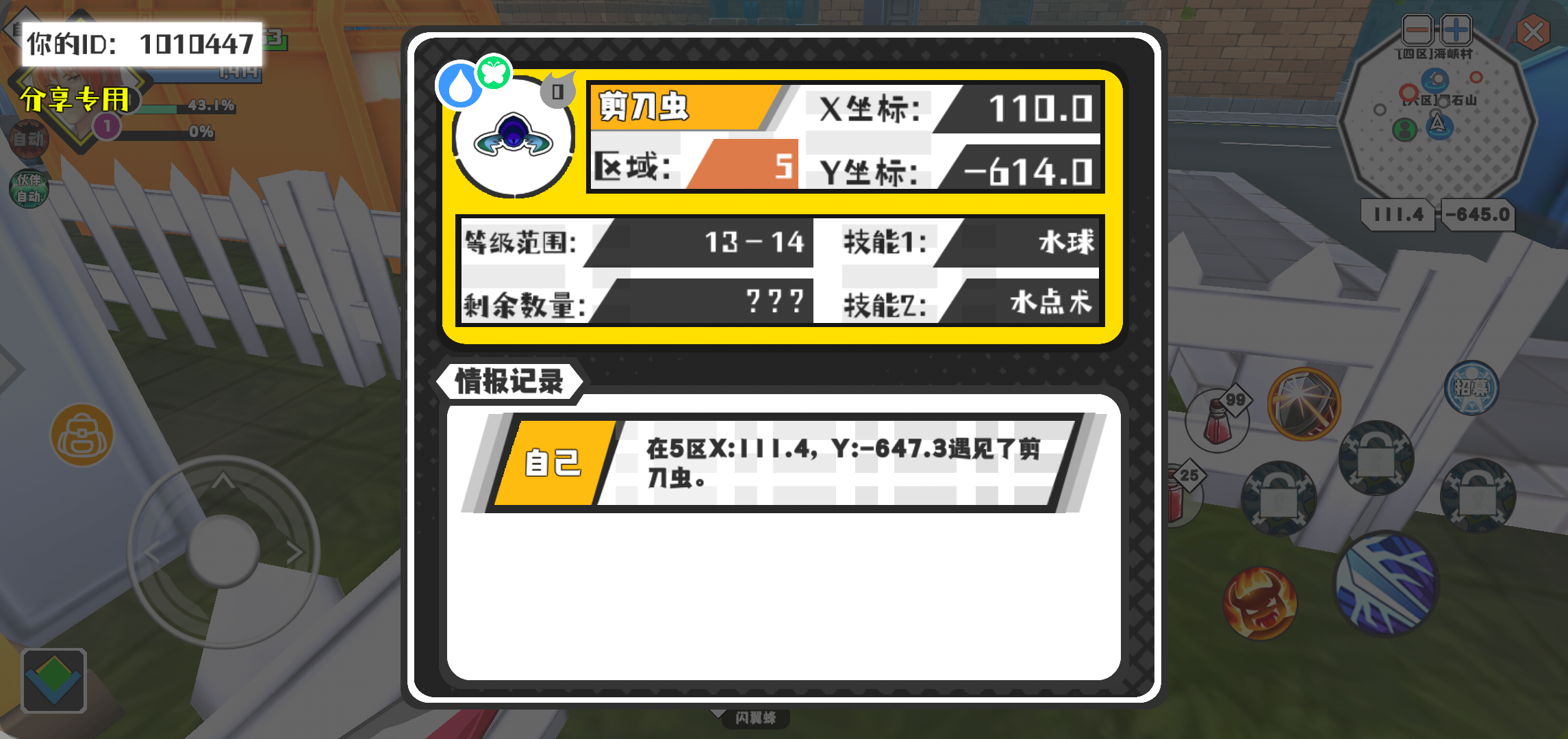 幸运时刻分享! 【魔物异常出没】3月14日下午12点 - 剪刀虫【强度0】 【5区】 【X:110.0, Y:-614.0】