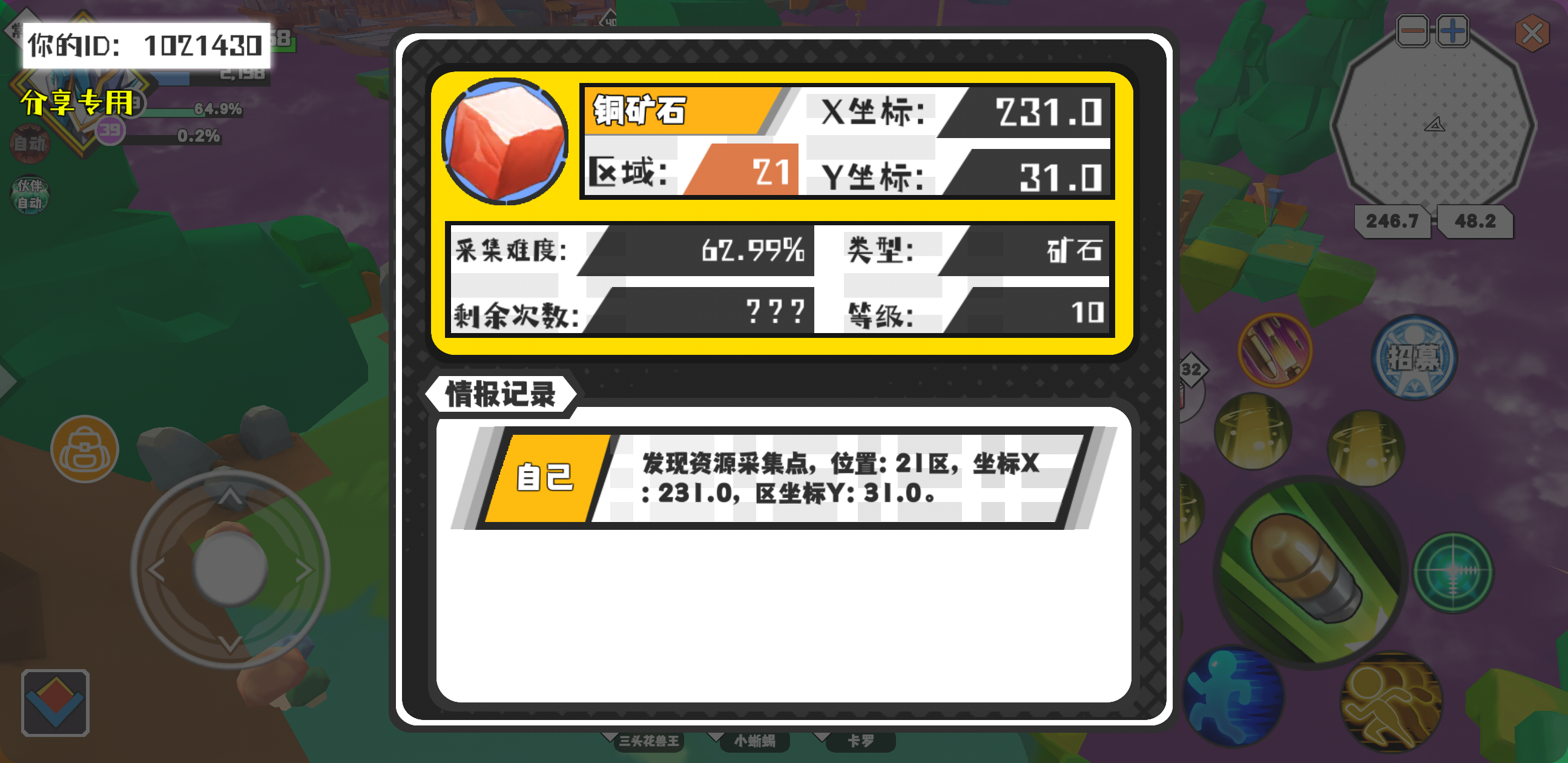 幸运时刻分享! 【资源采集点】3月14日下午1点 - 铜矿石【10级】 【21区】 【X:231.0, Y:31.0】