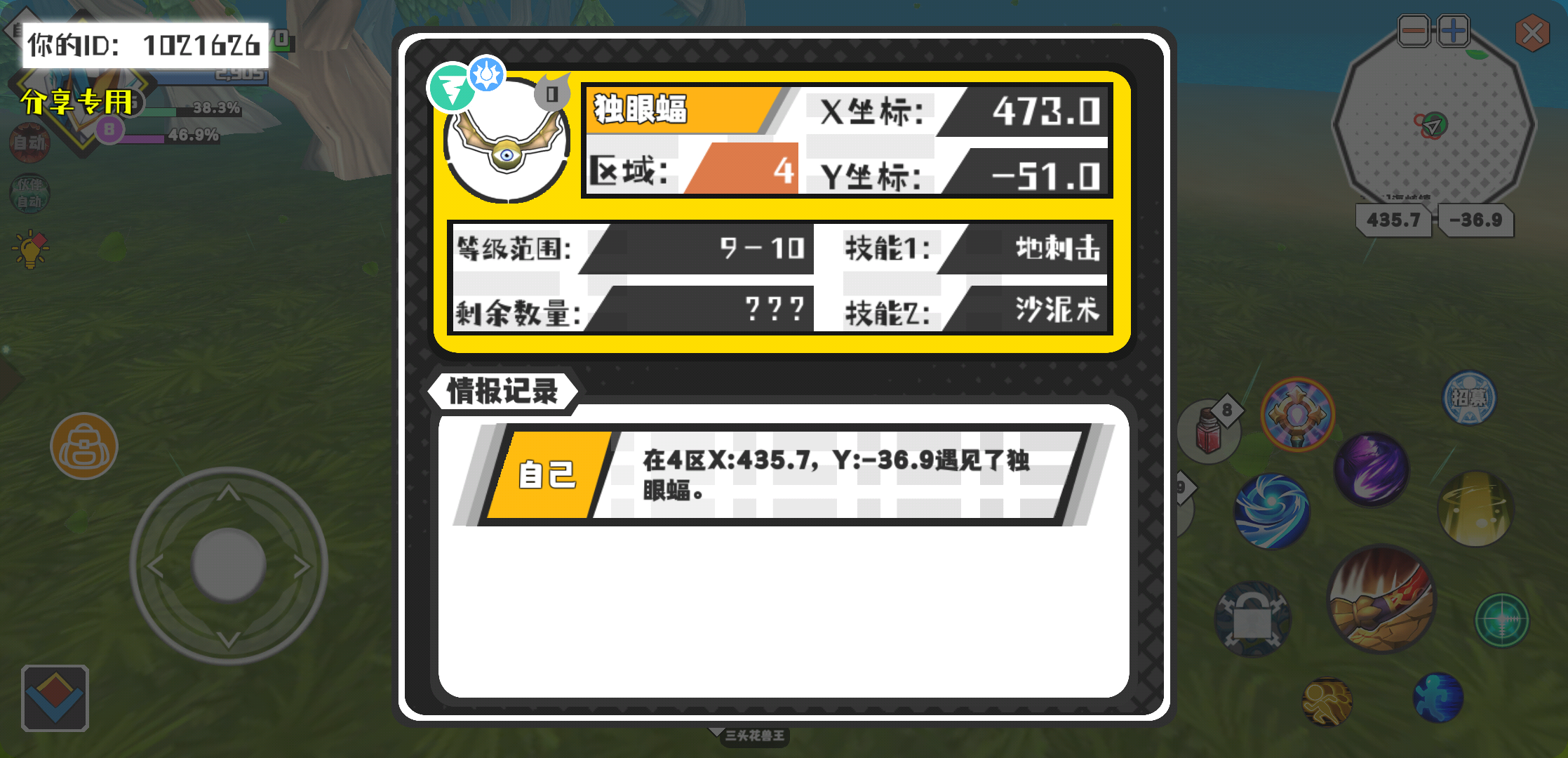 幸运时刻分享! 【魔物异常出没】3月14日上午8点 - 独眼蝠【强度0】 【4区】 【X:473.0, Y:-51.0】