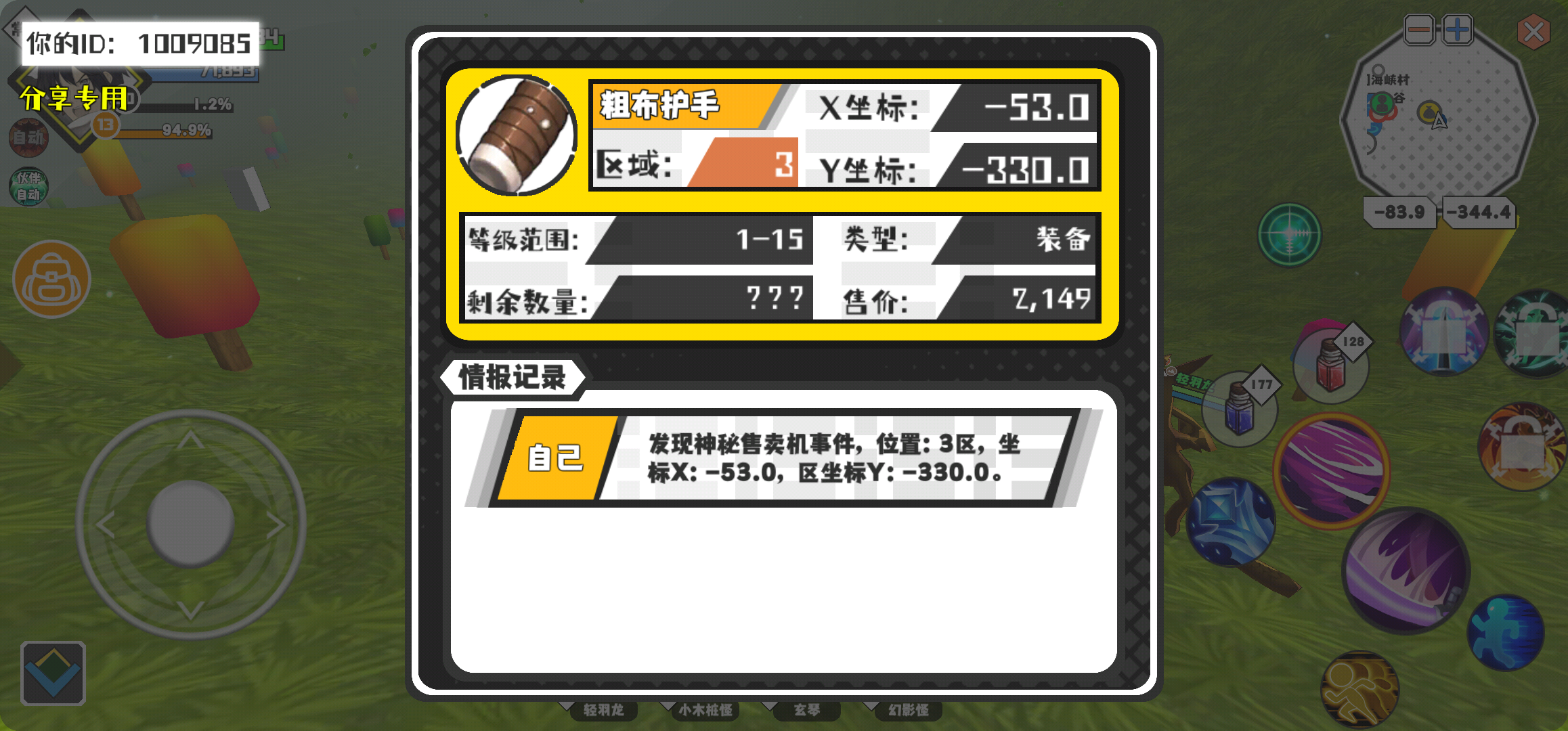 幸运时刻分享! 【神秘售卖机】3月14日上午10点 - 粗布护手【1-15级 】【稀有度:精良】 【3区】 【X:-53.0, Y:-330.0】