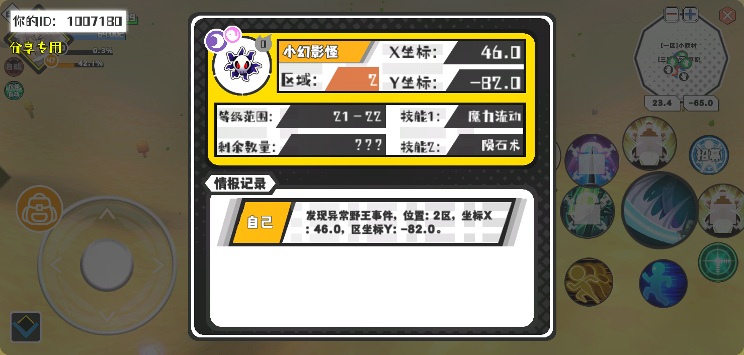 幸运时刻分享! 【野王异常出没】3月13日上午12点 - 小幻影怪【强度0】 【2区】 【X:46.0, Y:-82.0】