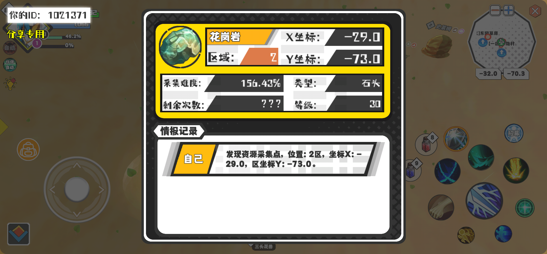 幸运时刻分享! 【资源采集点】3月12日下午10点 - 花岗岩【30级】 【2区】 【X:-29.0, Y:-73.0】