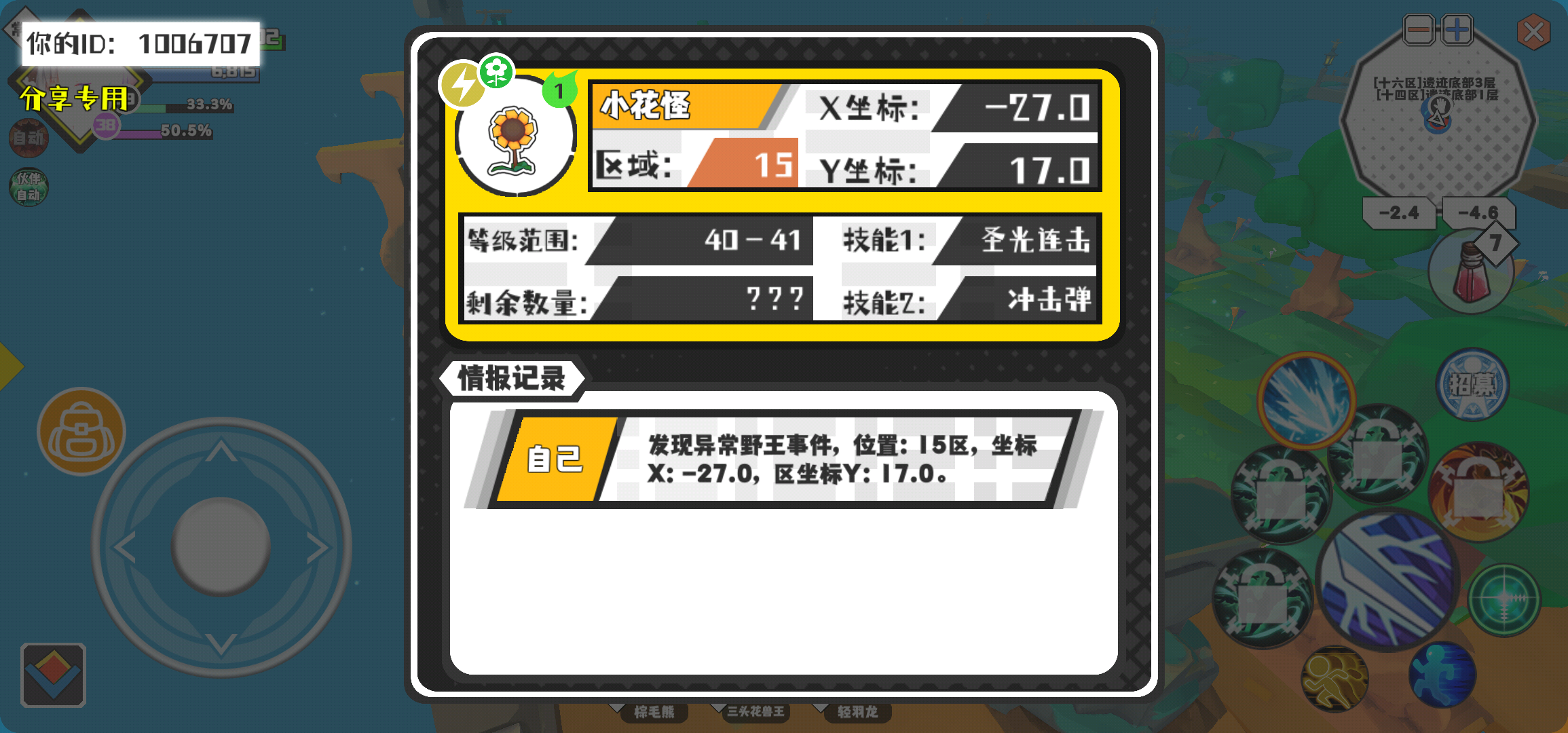 幸运时刻分享! 【野王异常出没】3月12日下午9点 - 小花怪【强度1】 【15区】 【X:-27.0, Y:17.0】