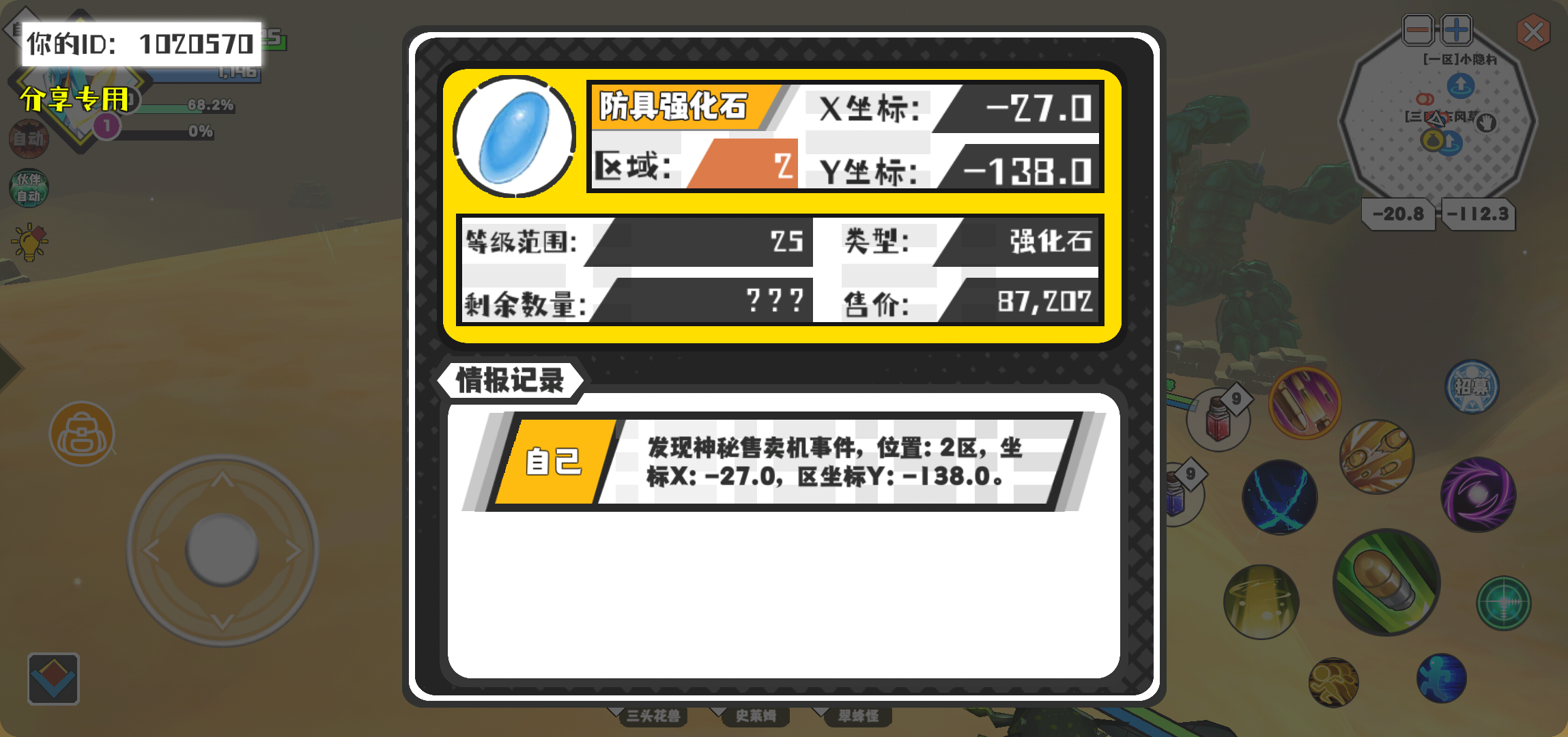 幸运时刻分享! 【神秘售卖机】3月12日下午12点 - 防具强化石【25级 】【稀有度:精良】 【2区】 【X:-27.0, Y:-138.0】