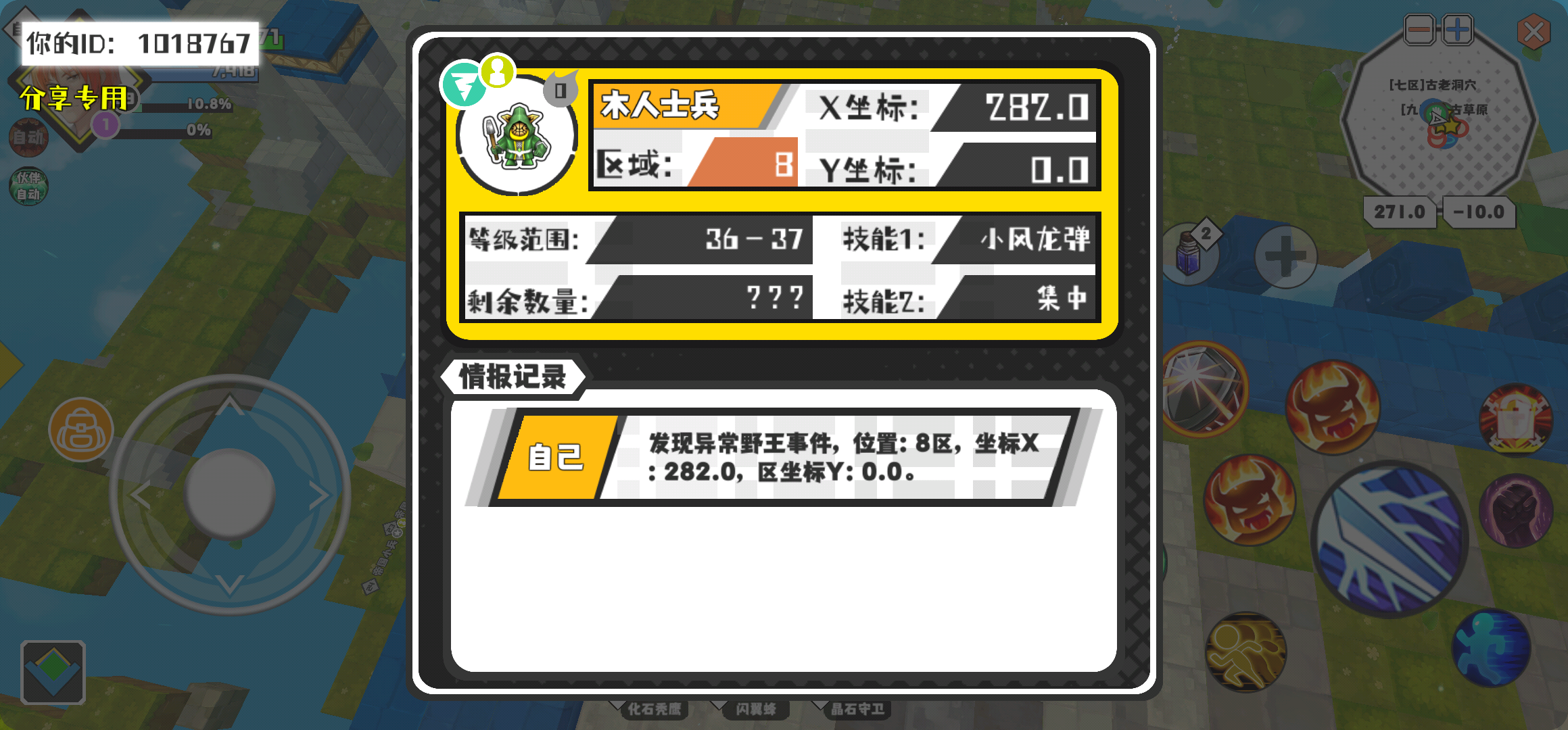 幸运时刻分享! 【野王异常出没】3月12日上午11点 - 木人士兵【强度0】 【8区】 【X:282.0, Y:0.0】