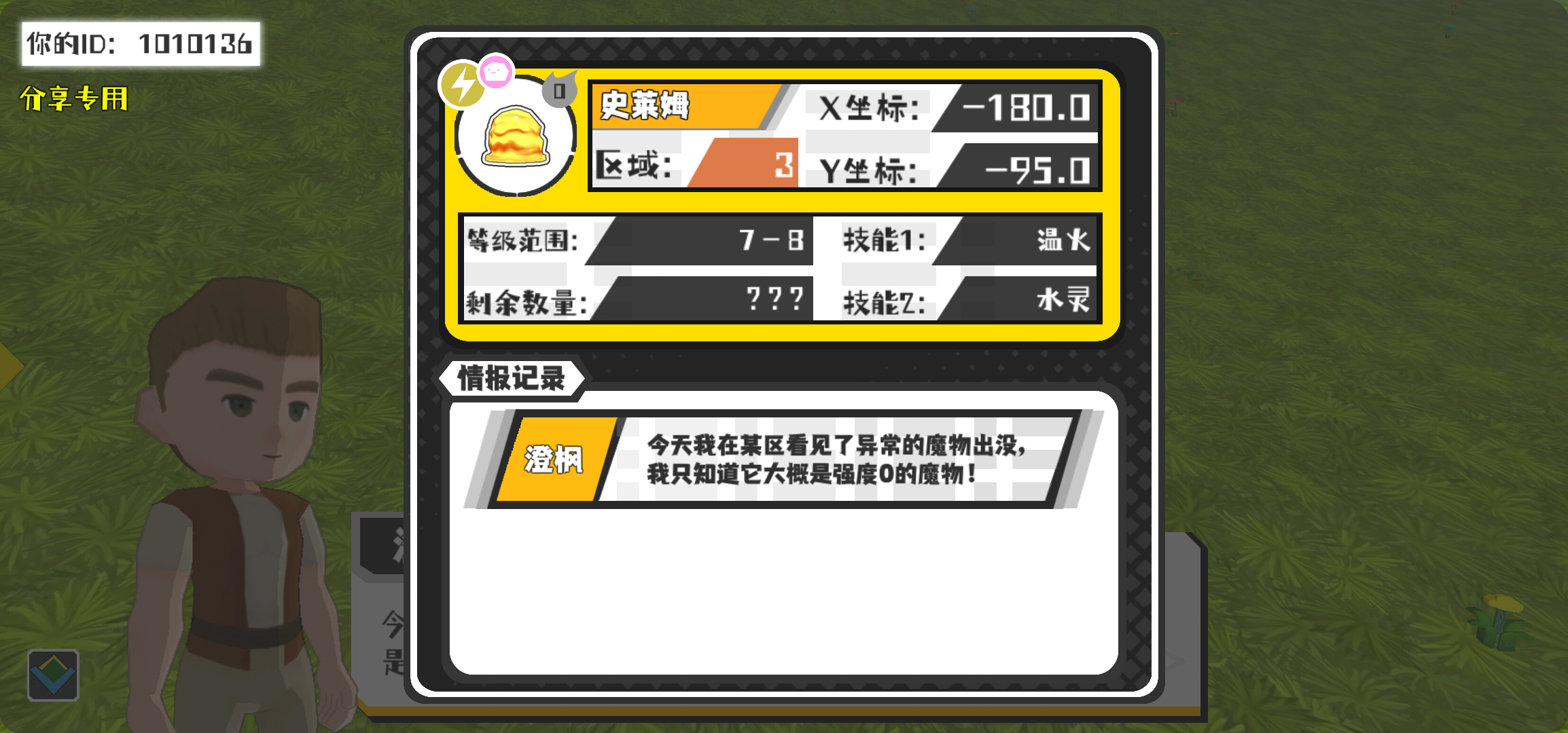幸运时刻分享! 【魔物异常出没】3月9日下午11点 - 史莱姆【强度0】 【3区】 【X:-180.0, Y:-95.0】