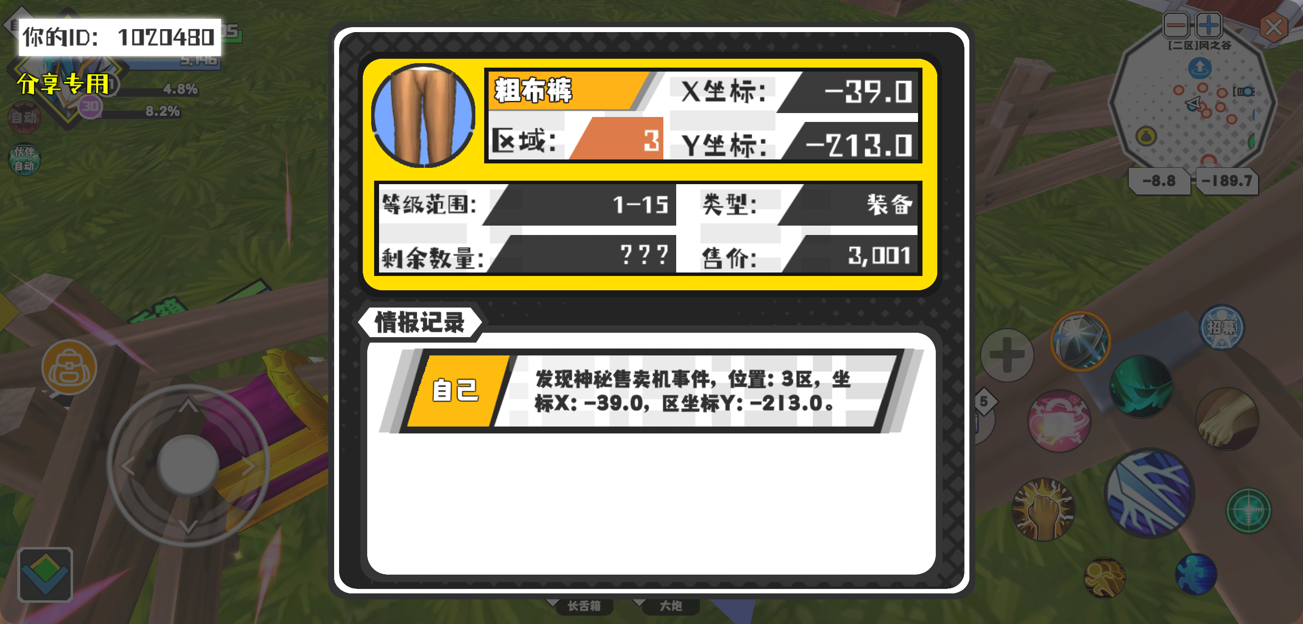 幸运时刻分享! 【神秘售卖机】3月9日下午9点 - 粗布裤【1-15级 】【稀有度:稀有】 【3区】 【X:-39.0, Y:-213.0】