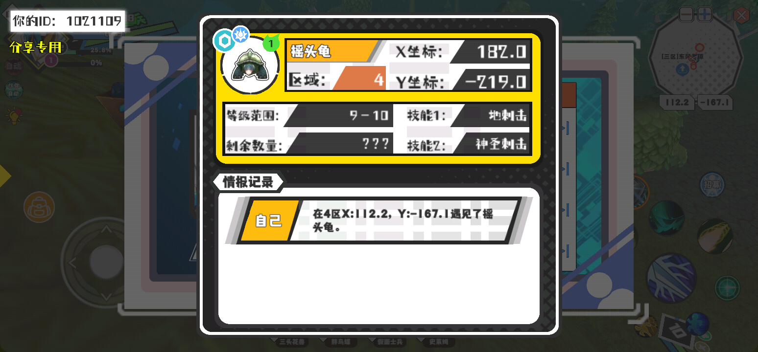 幸运时刻分享! 【魔物异常出没】3月10日上午1点 - 摇头龟【强度1】 【4区】 【X:182.0, Y:-219.0】这啥啊