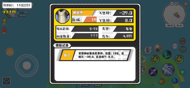 幸运时刻分享! 【神秘售卖机】8月14日下午1点 - 铜铠甲【5-25级 】【稀有度:稀有】 【19区】 【X:-39.0, Y:8.0】