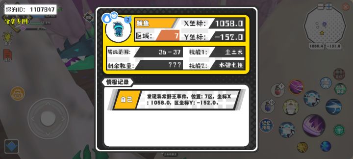 幸运时刻分享! 【野王异常出没】8月13日上午10点 - 鱿鱼【强度3】 【7区】 【X:1058.0, Y:-152.0】