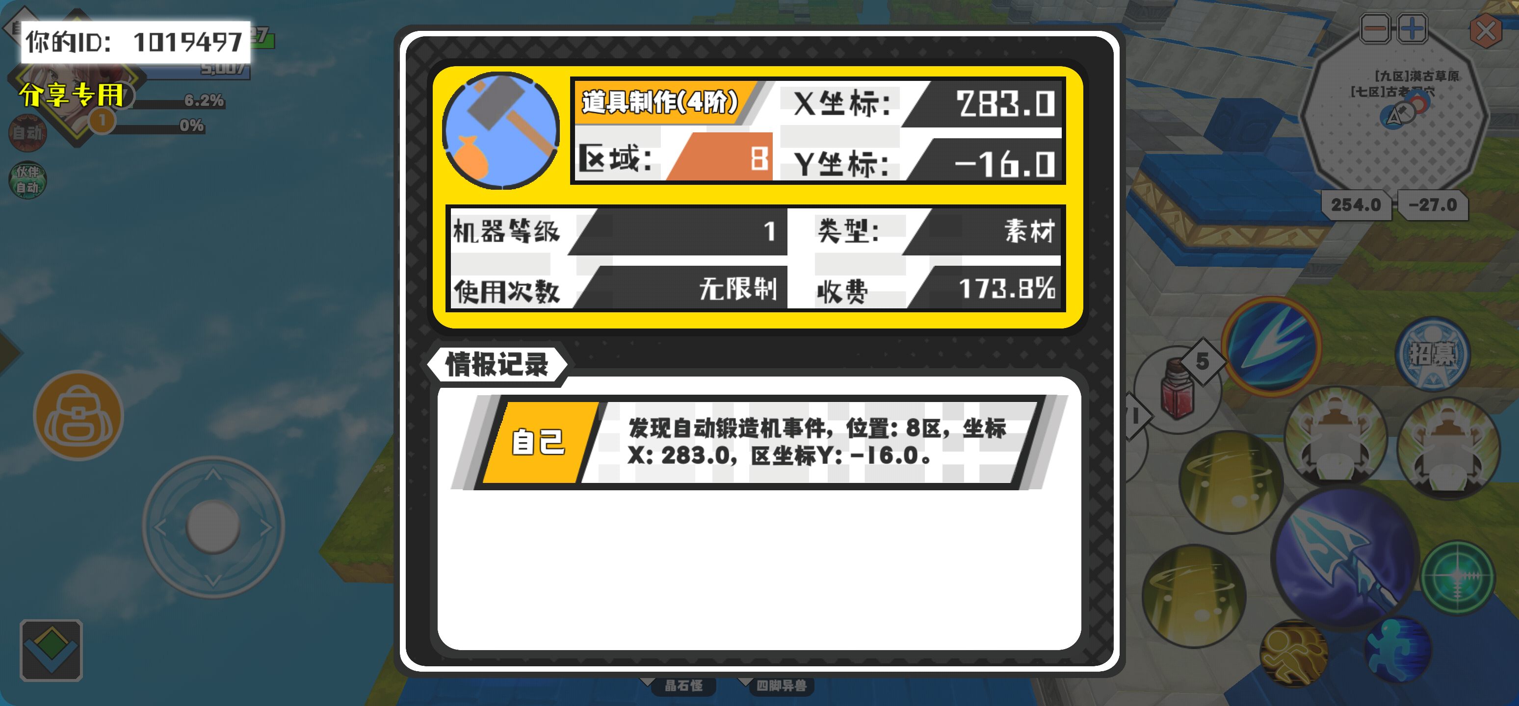 幸运时刻分享! 【自动锻造机】3月9日上午12点 - 装备降需【2级机器】 【3区】 【X:-49.0, Y:-132.0】