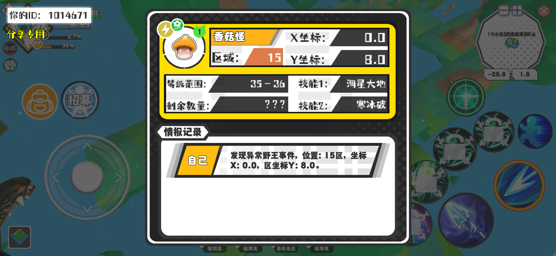 幸运时刻分享! 【野王异常出没】3月8日下午8点 - 香菇怪【强度1】 【15区】 【X:0.0, Y:8.0】