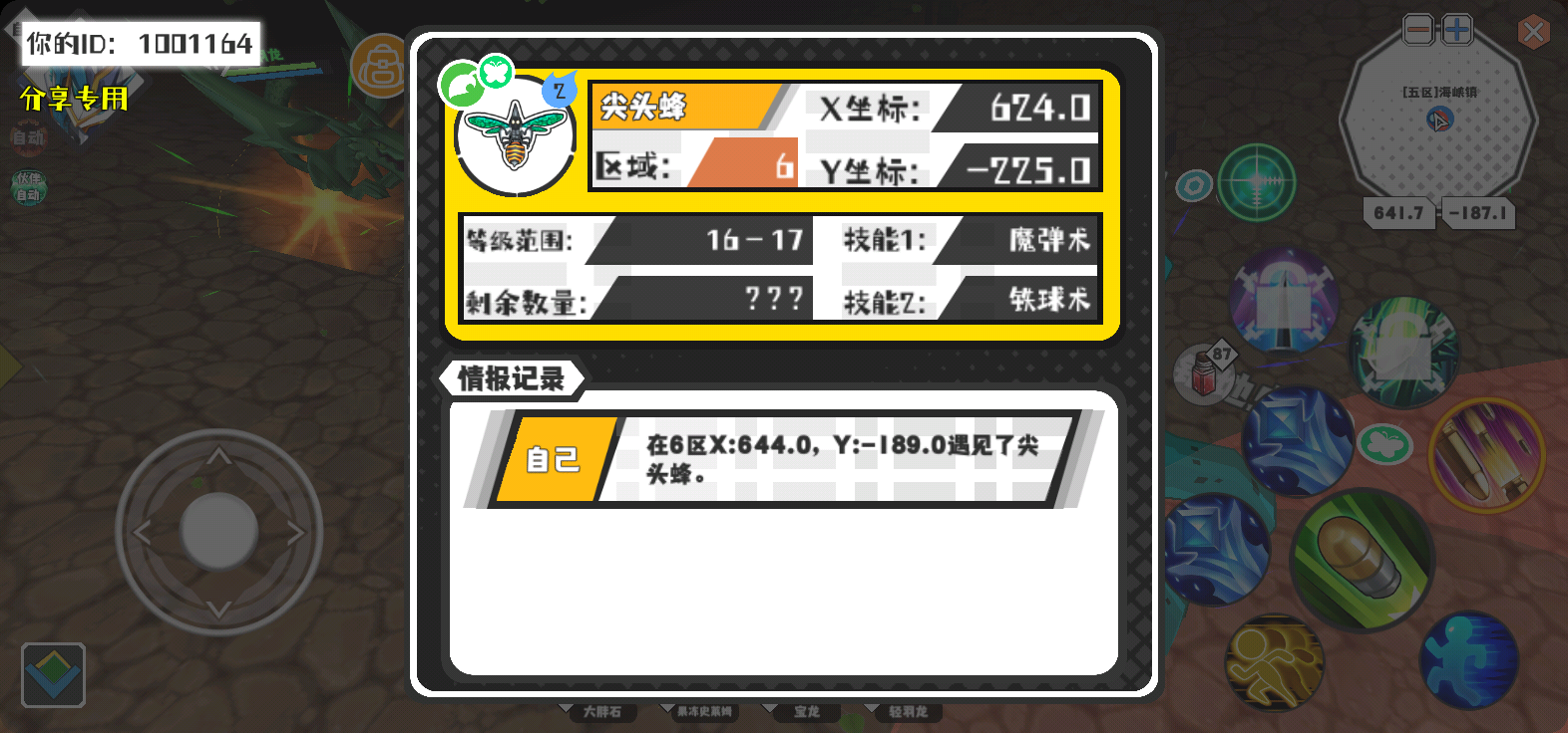 幸运时刻分享! 【魔物异常出没】3月8日下午11点 - 尖头蜂【强度2】 【6区】 【X:624.0, Y:-225.0】