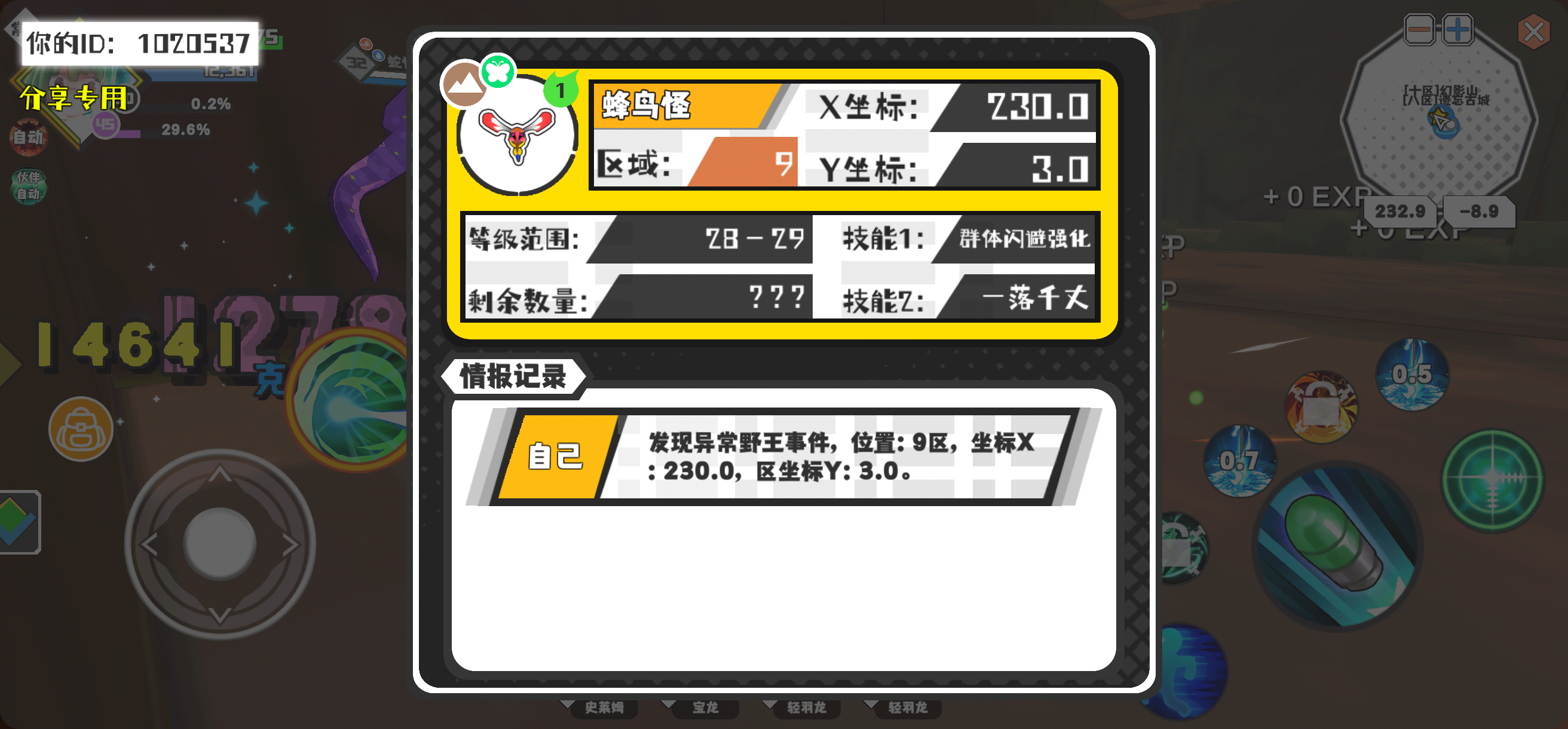 幸运时刻分享! 【野王异常出没】3月9日上午12点 - 蜂鸟怪【强度1】 【9区】 【X:230.0, Y:3.0】