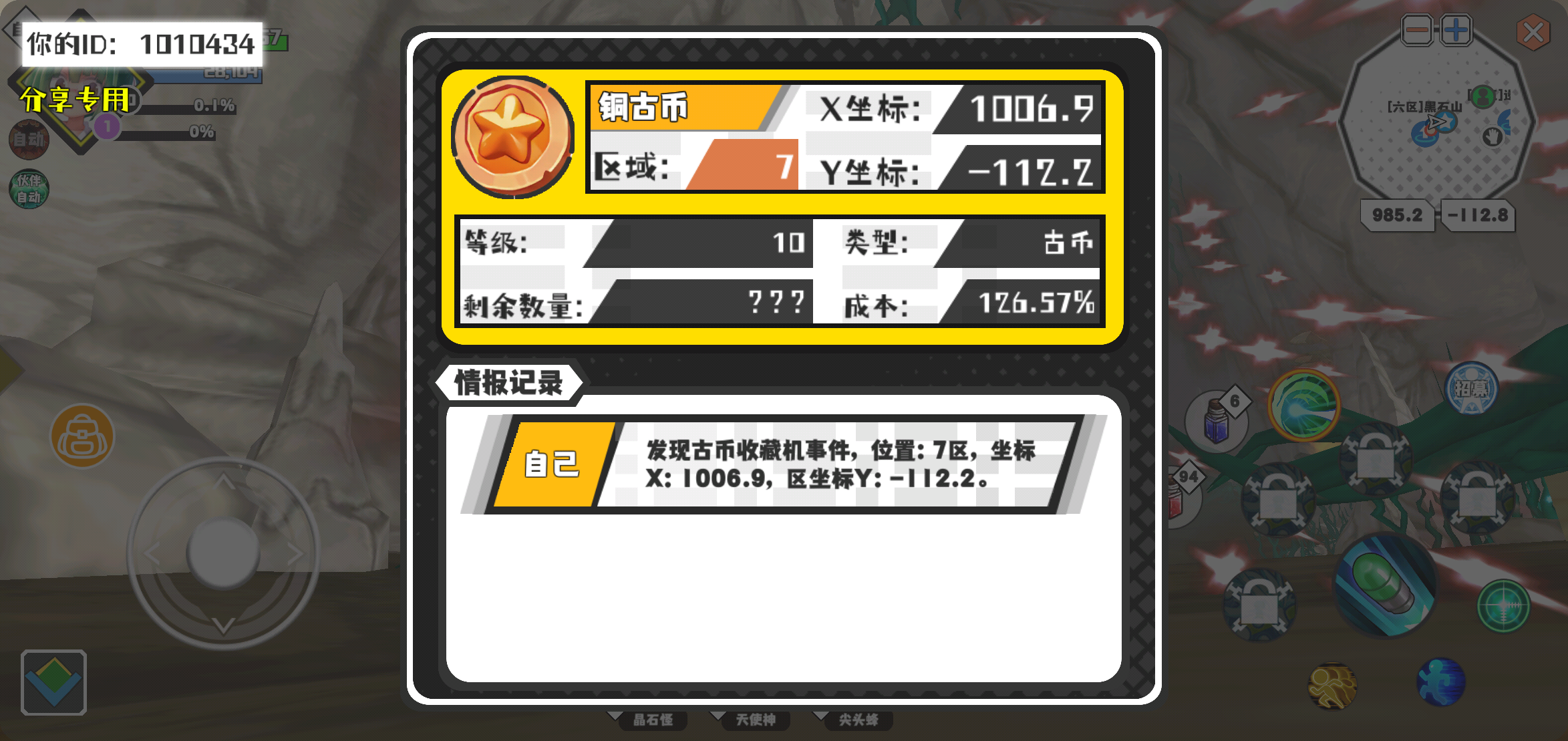 幸运时刻分享! 【古币收藏机】3月8日下午3点 - 赋能珠碎片 【2区】 【X:-60.0, Y:-136.0】
